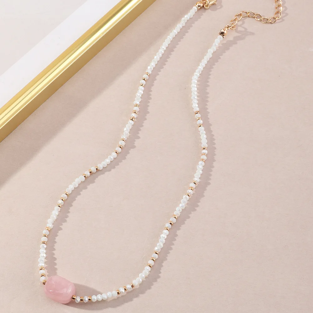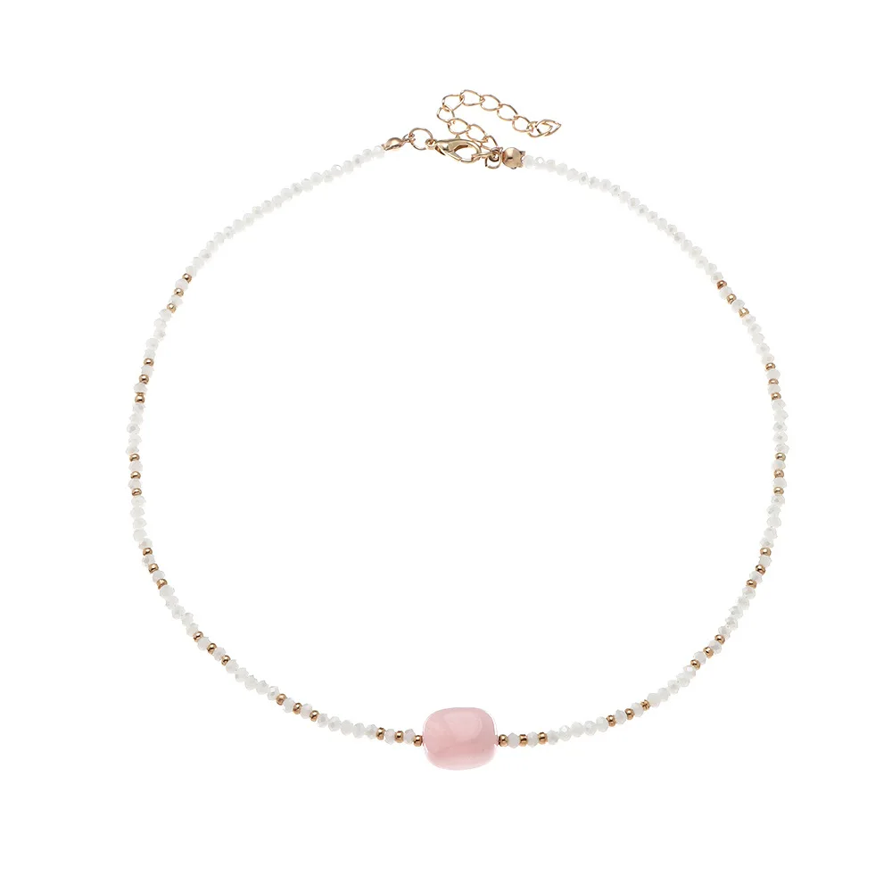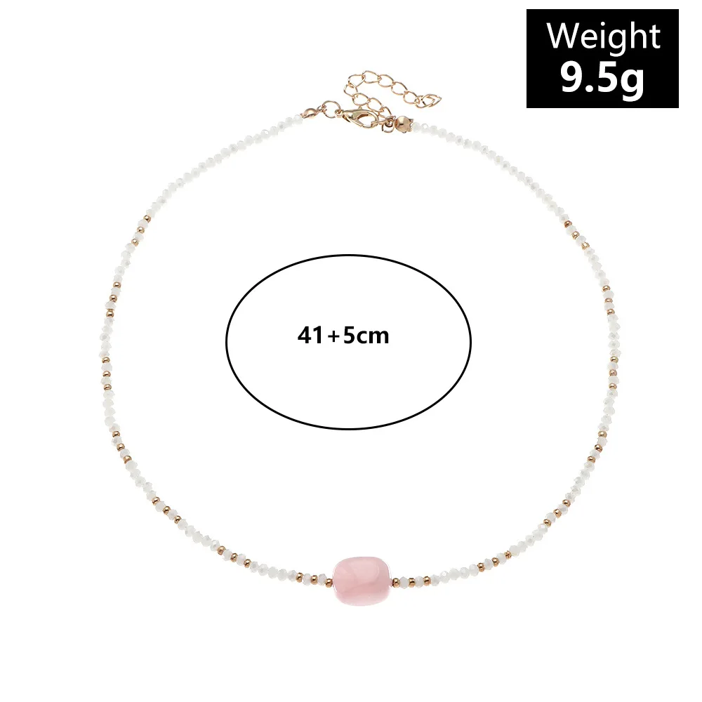 Богемное винтажное короткое ожерелье с белыми бусинами и розовой цветной глазурью женское модное колье-чокер до ключиц ожерелье подарок для девушки женские ювелирные изделия