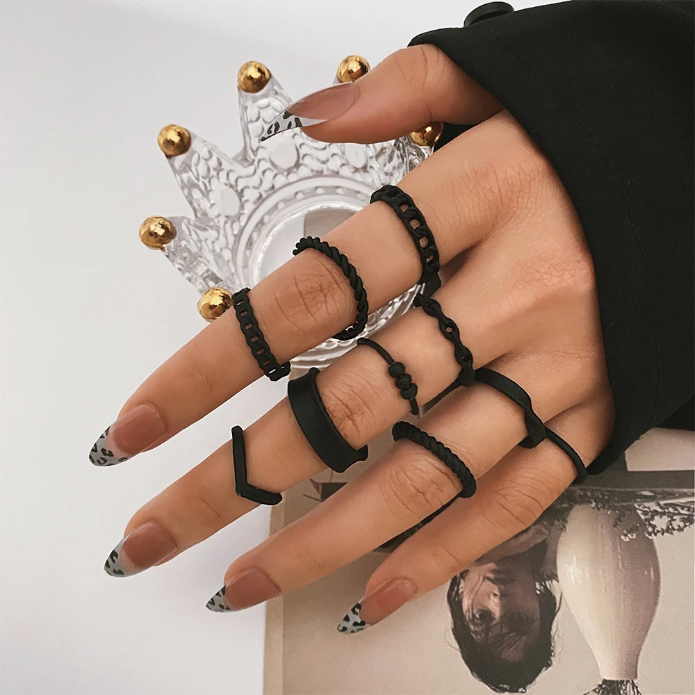 IFMIA панковские кольца на палец, минималистичные черные бриллиантовые металлические кольца для женщин и девушек, женские Украшения для вечеринок, бижутерия для женщин