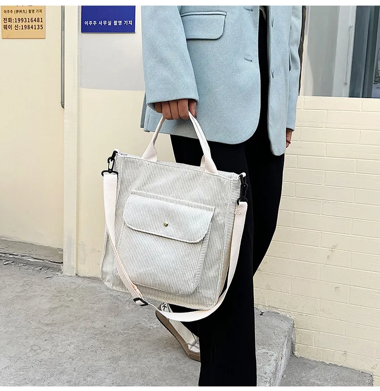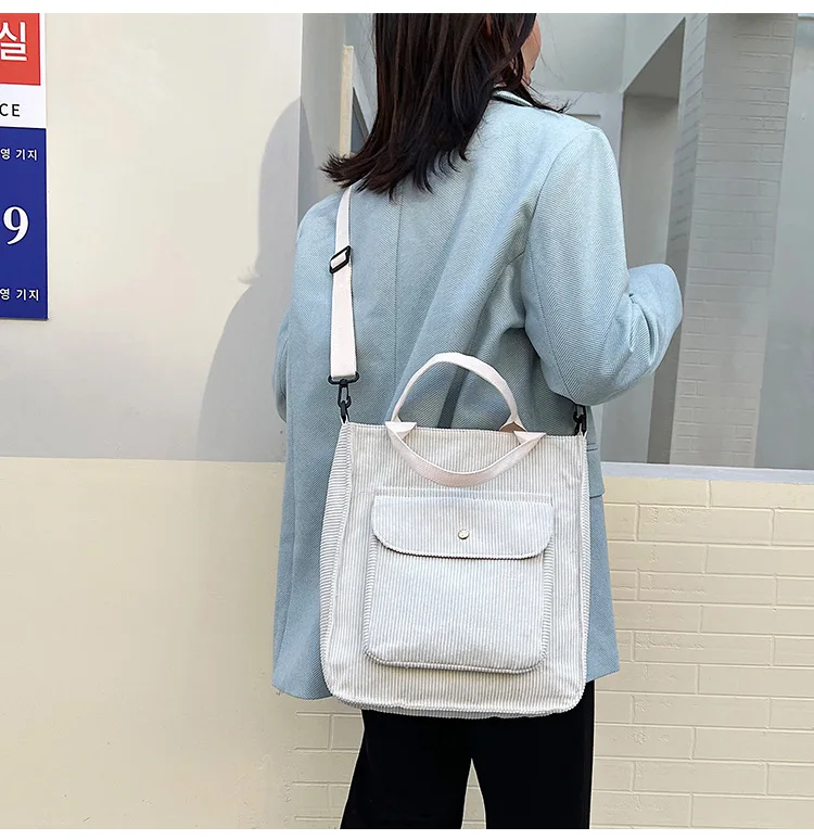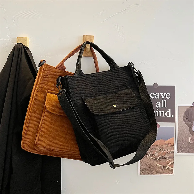 Сумка женская Вельветовая на молнии, повседневный саквояж на плечо из холщовой ткани, экологически чистая сумочка-тоут через плечо, винтажный мессенджер