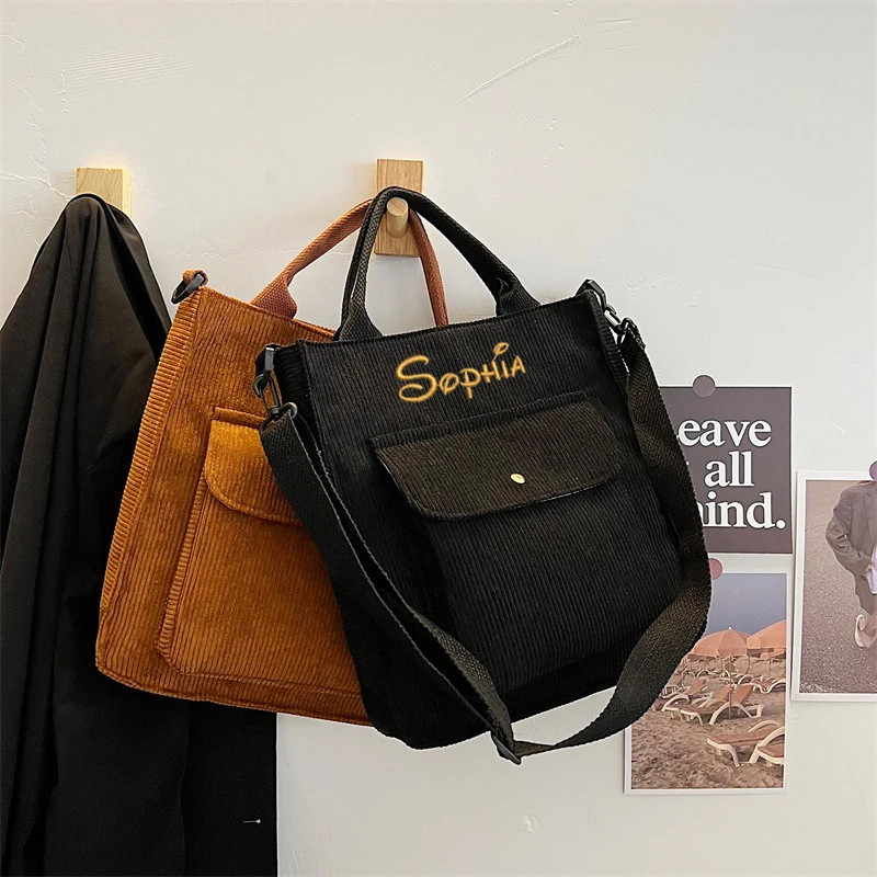 Персонализированная Женская Вельветовая сумка на молнии, Холщовая Сумка, повседневная сумка-тоут, женская сумка через плечо, винтажная сумка-мессенджер