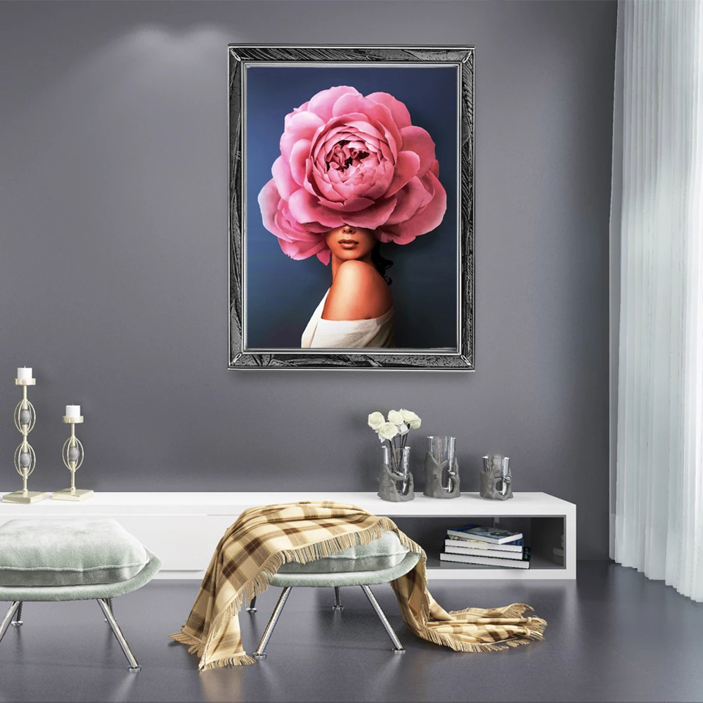 Алмазная 5d Вышивка сделай сам с девушкой и цветком, алмазная живопись, вышивка крестиком, портрет стразы, мозаика, украшение для дома, Новогодний подарок