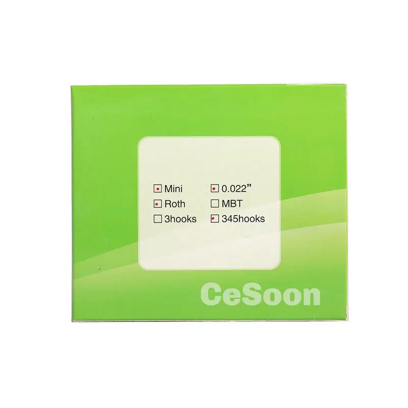 А. Гладкая поверхность значительно улучшает комфорт пациентов.B. Крутящий момент разработан на кронштейне для легкой обработки.C. Цветовое кодирование для легкой справки о местоположении зуба.D. Функция запирания слота: соотвествуйте с эластичным запирающим листом слота специального материала, чтобы обеспечить надежность самолигирующей системы.Е. Конструкция с двойными крыльями: четыре квадратных крыла обеспечивают необходимое условие для гибки. Постоянный знак, чтобы удостовериться в идентификации премолярного.F. Функция упругого фиксирующего элемента: изготовлено из специального материала, его можно открыть и заблокировать более 200 раз. Структурная конструкция патентной защиты для легкого использования в клинических условиях.G. 3D основание поверхности, 80 сварных сетчатых основания обеспечивают надежную, долговечную и эффективную прочность склеивания, нет цвета, сохраненного на поверхности после удаления, скобы, моделирование изогнутого основания, проектирование совпадают с поверхностью зуба.Включает:20 металлических кронштейнов и 8 буковых трубок