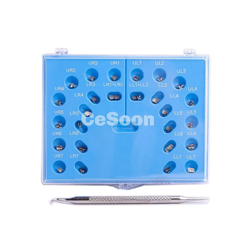 28 шт.кор. стоматологический ортодонтический моноблок, пассивные самолигирующие скобки с 8 зубчатыми трубками Mini RothMBT Solt 022, крючки 345