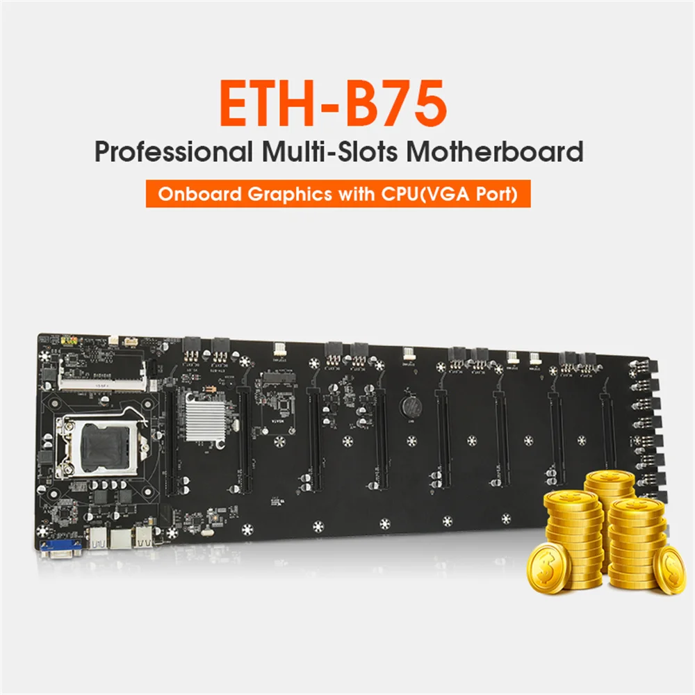 Материнская плата B75 LGA 1155 с поддержкой 8 GPU, графическая видеокарта USB3.0 к Pci Express 16X 1X DDR3 для ETH Ethereum, добывающая установка