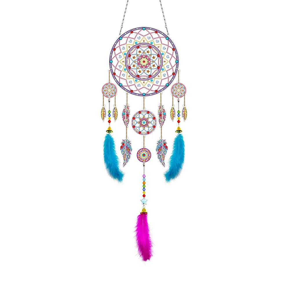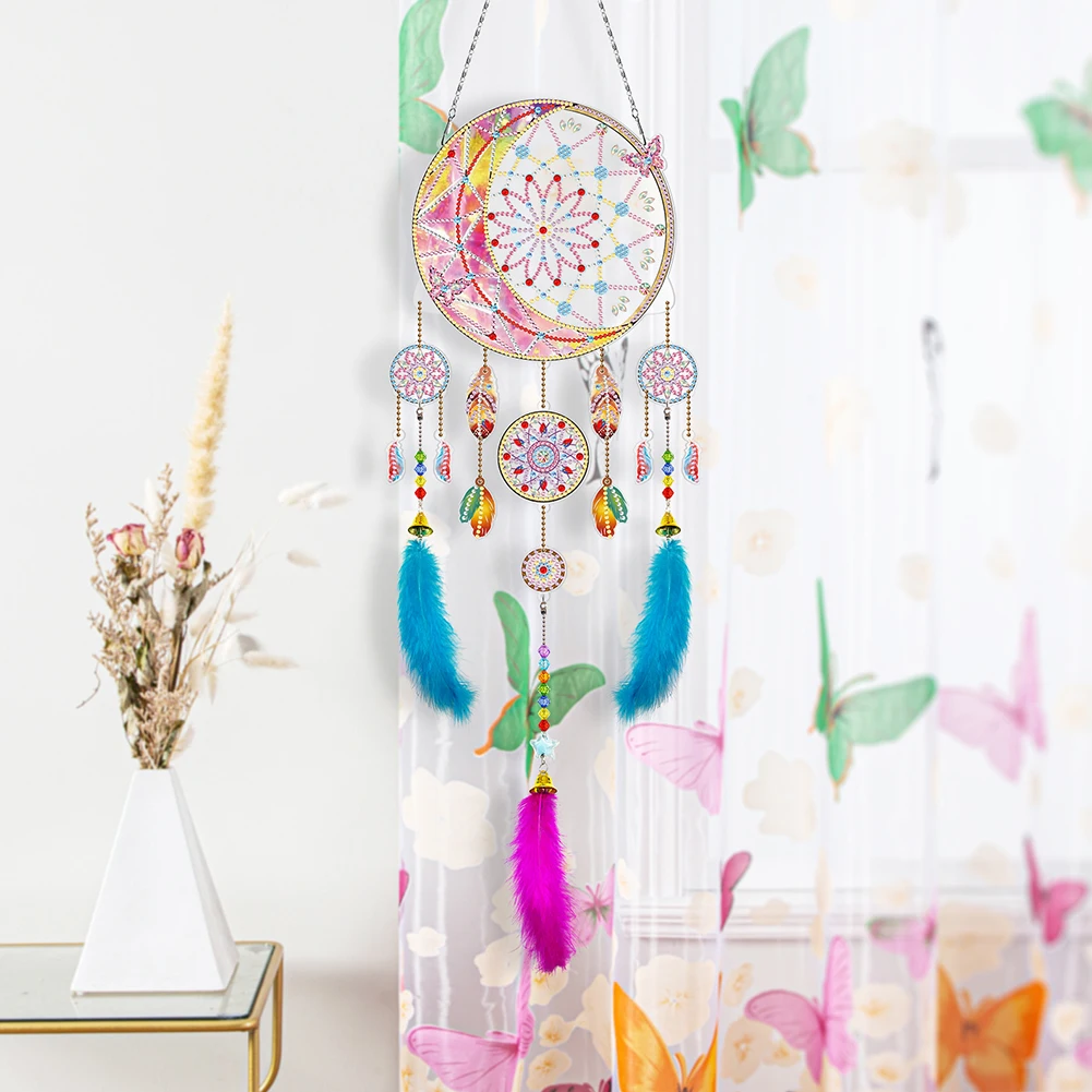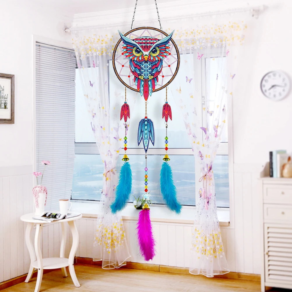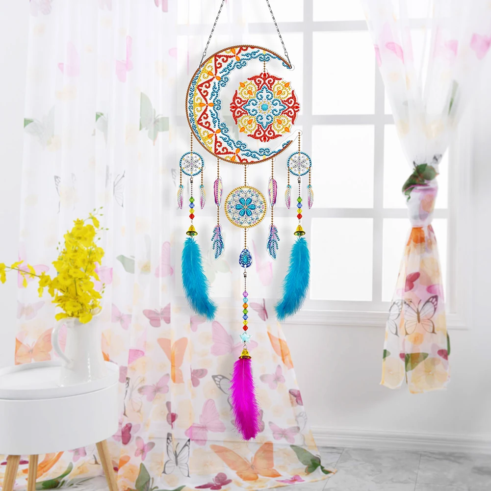 Алмазная 5D картина "сделай сам", Ловец снов, Музыка Ветра, мозаика, перо, цепочка из бисера, подвесные украшения, набор для алмазной живописи