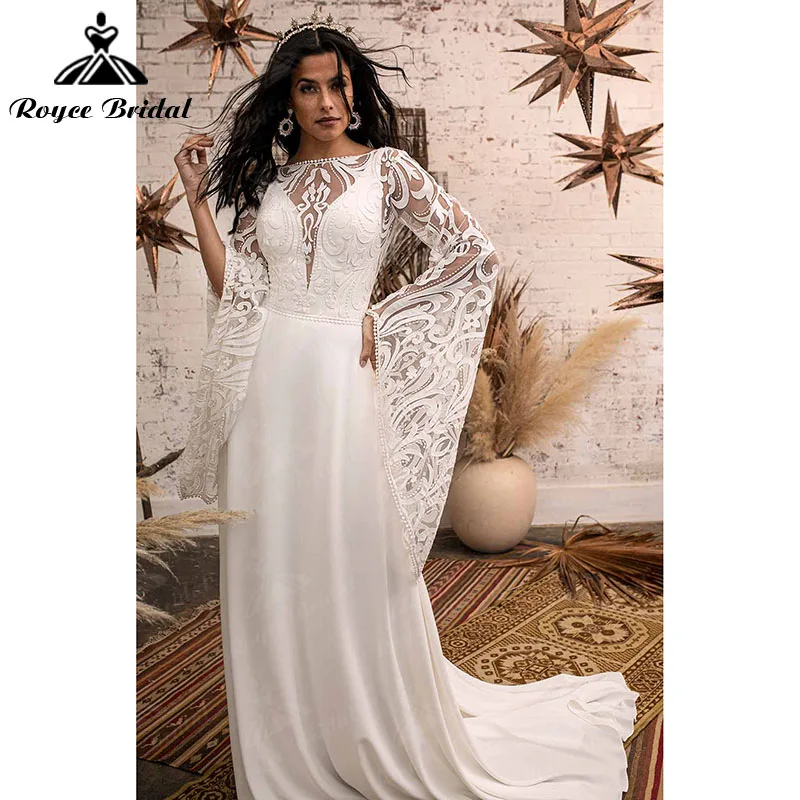 Богемное свадебное платье А-силуэта в богемном стиле с длинными рук...