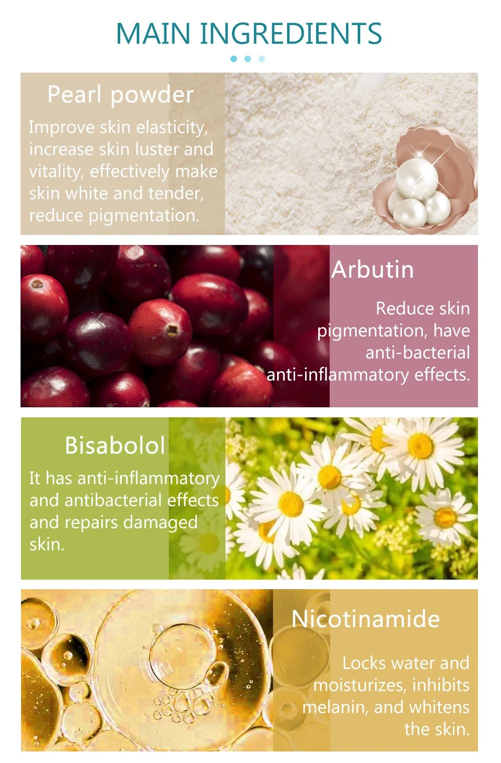 ИнгредиентPearl Powder,Arbutin,Bisabolol,Glycyrrhizic Acid,Niacinamide