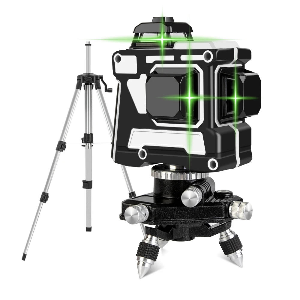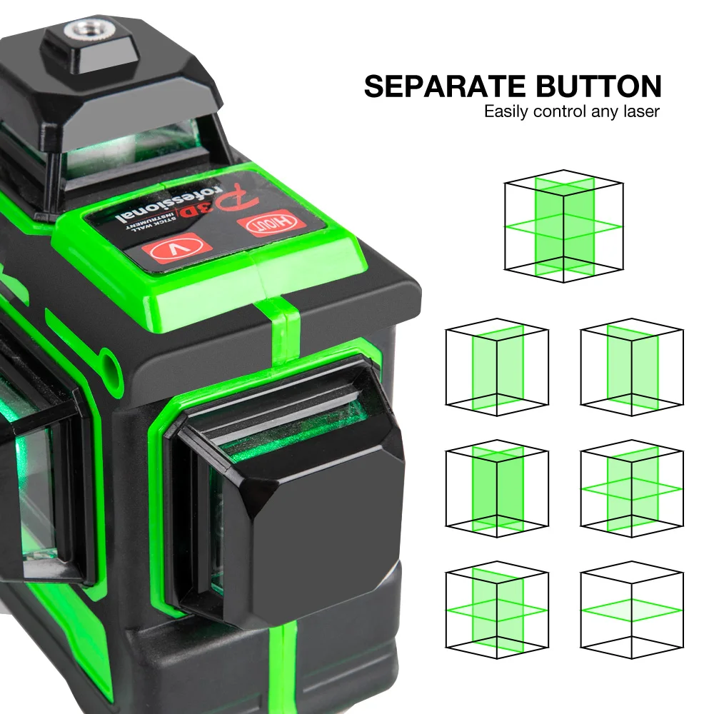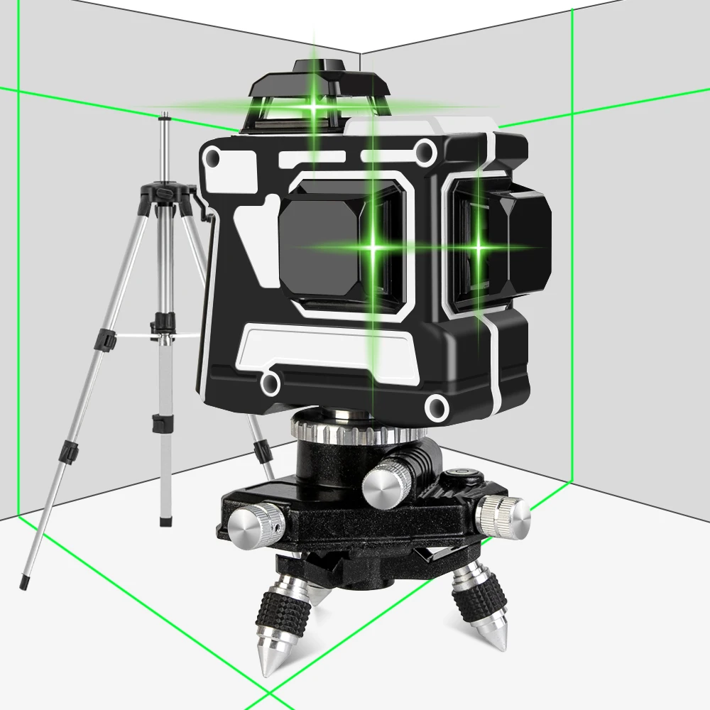 Зеленый лазерный уровень, 12 линий, 360 градусов, самонивелирующийся профессиональный горизонтальный и вертикальный 3d-лазер со штативом