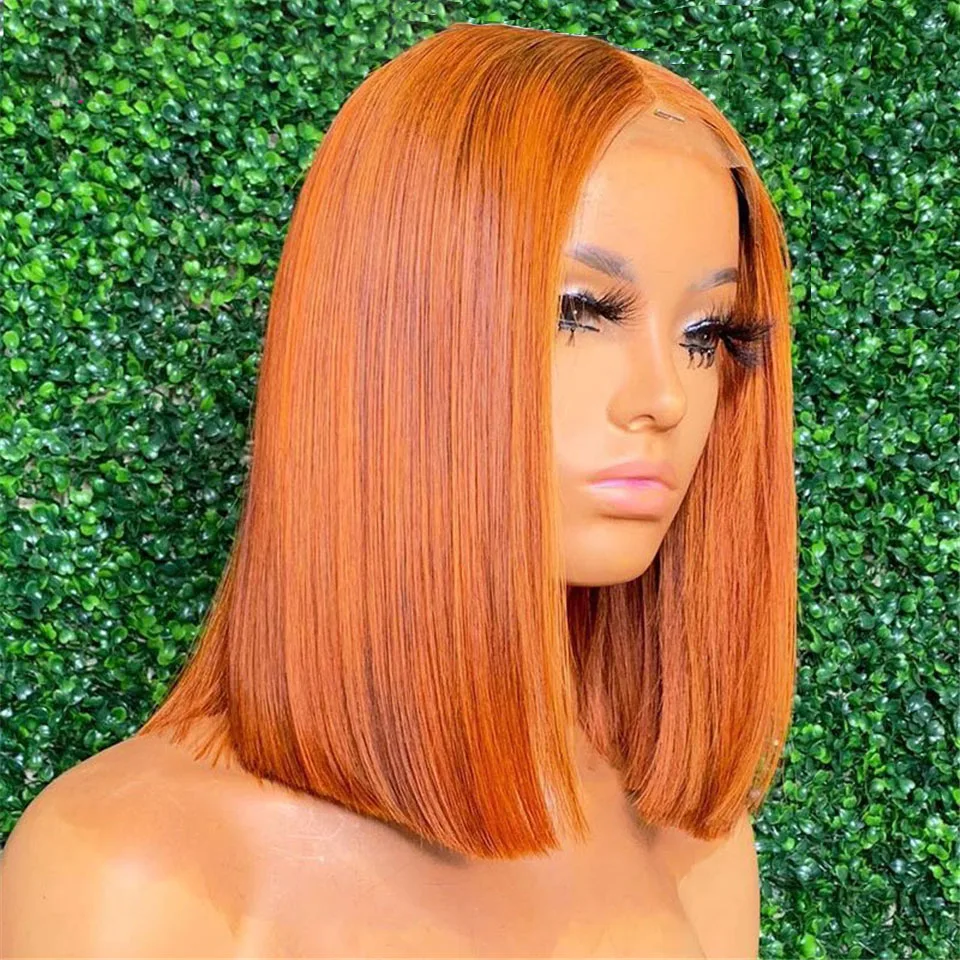 Бразильский Омбре оранжевый Боб кружевные передние человеческие волосы парики имбирь прямые боб парик 180% Плотность