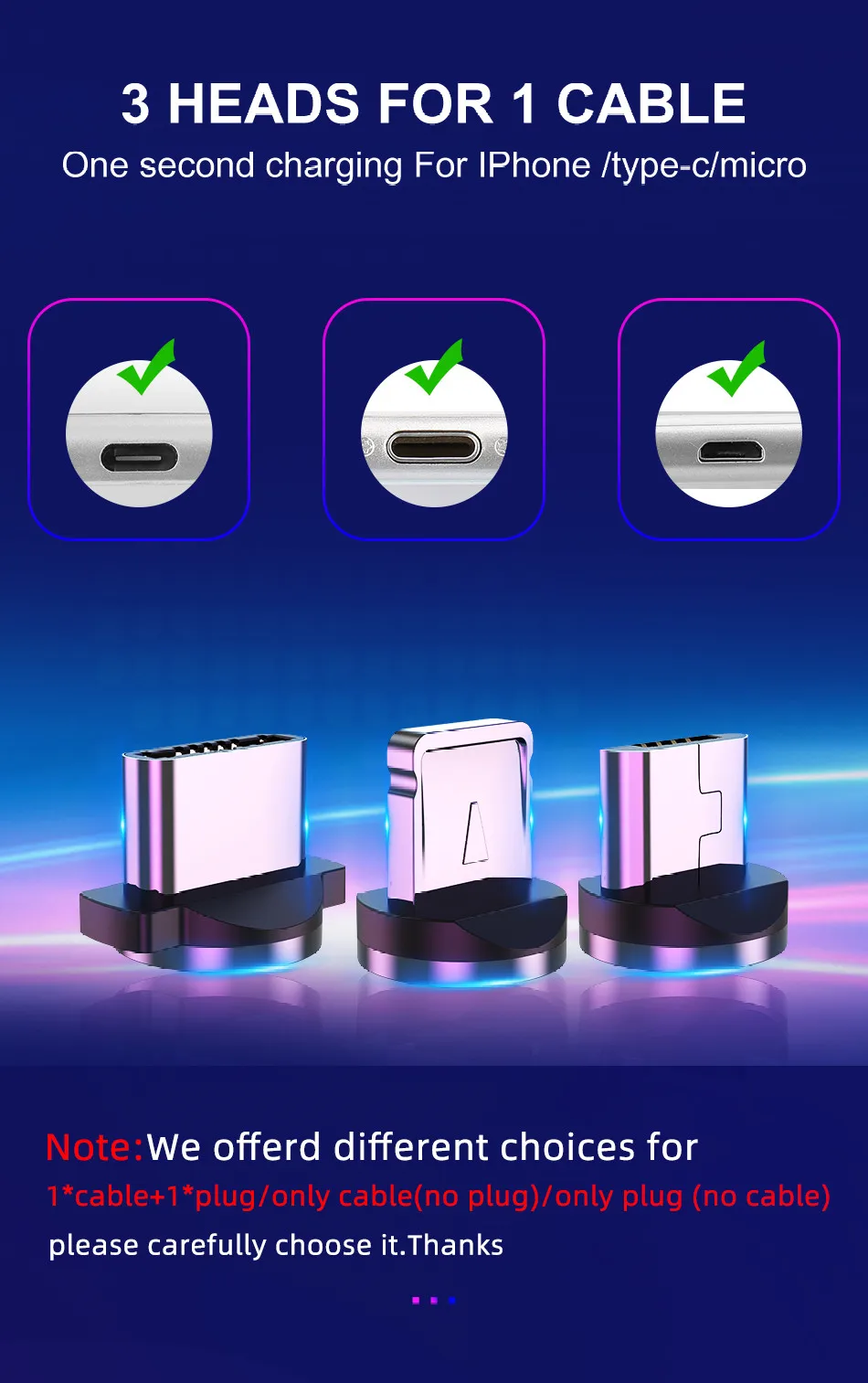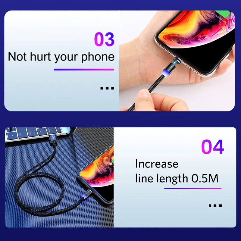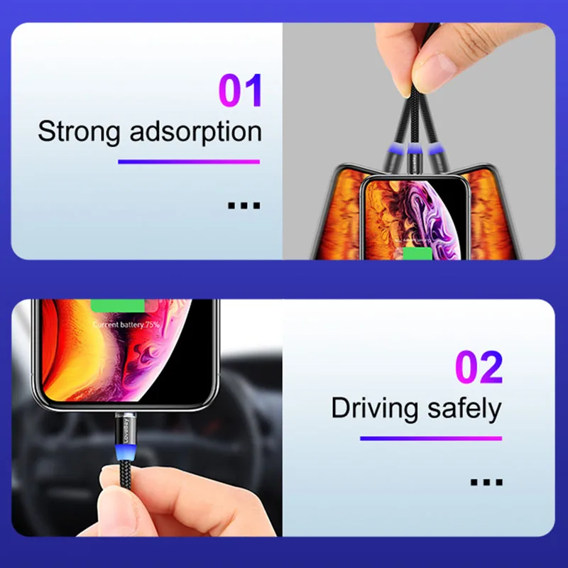 Магнитный кабель USB-Type CMicro USBLightning для телефонов iPhone Android, 0.5-2 м