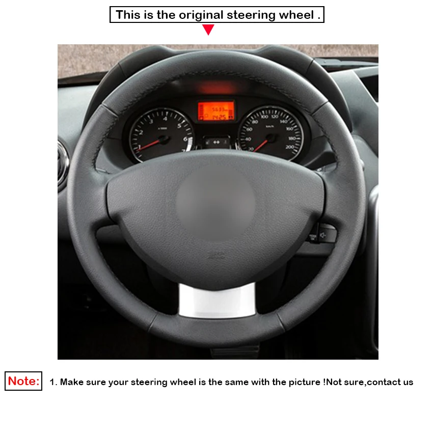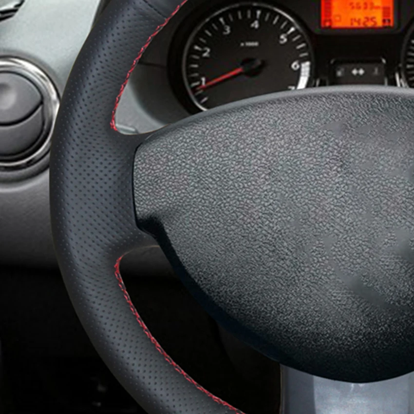 Черный чехол на руль LQTENLEO из натуральной кожи для Dacia (Renaul...