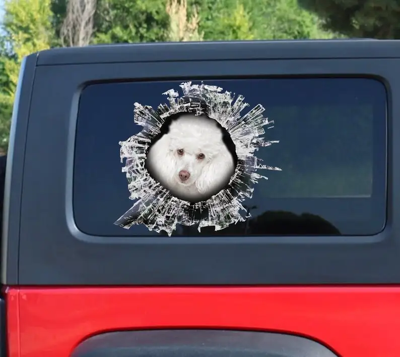Наклейка на окно игрушечного пуделя, наклейка на машину, наклейка на автомобиль игрушечного пуделя, забавная наклейка