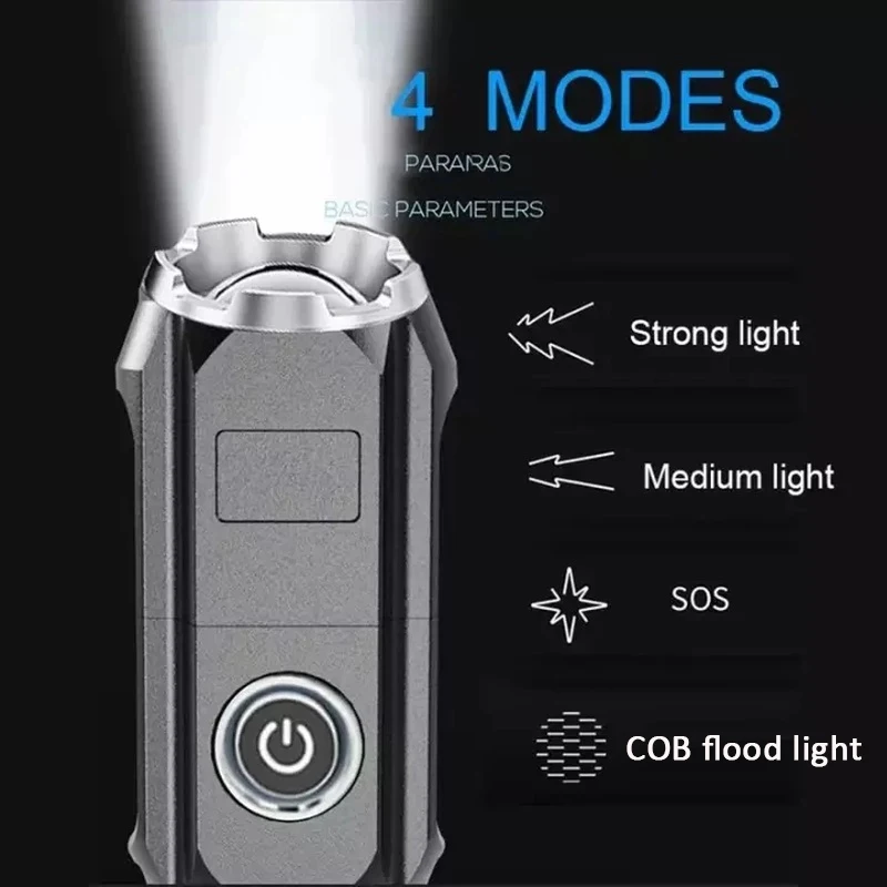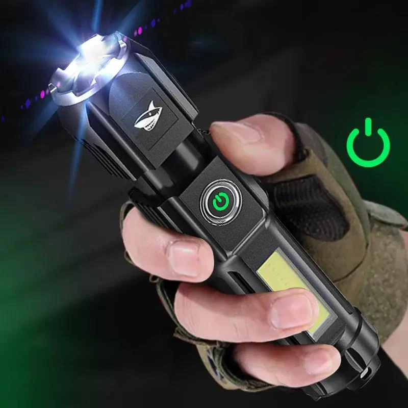 Портативная перезаряжаемая USB светодиодная вспышка, Мощная Вспышка, масштабируемый фонарик с 3 режимами светильник, встроенный аккумулятор светильник рь для кемпинга