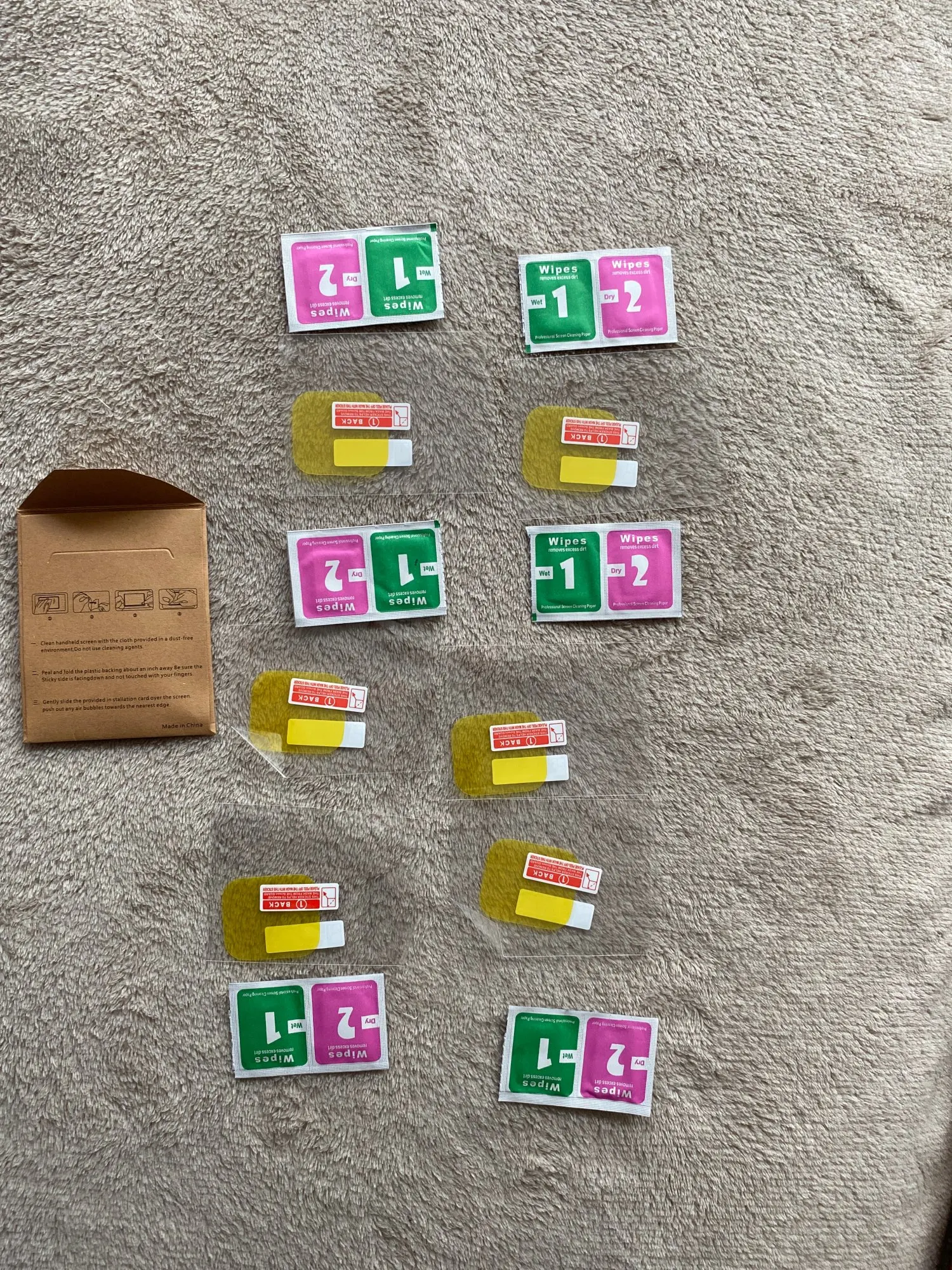 Товар гарно запакований, кожна плівка окремо з серветкою для обезжирювання, в комплекті 3 таких набора Сама плівка досить м'яка, не як захисне скло, а саме більше як товста плівка, після удару лишає вмятини за це знімаю зірочку