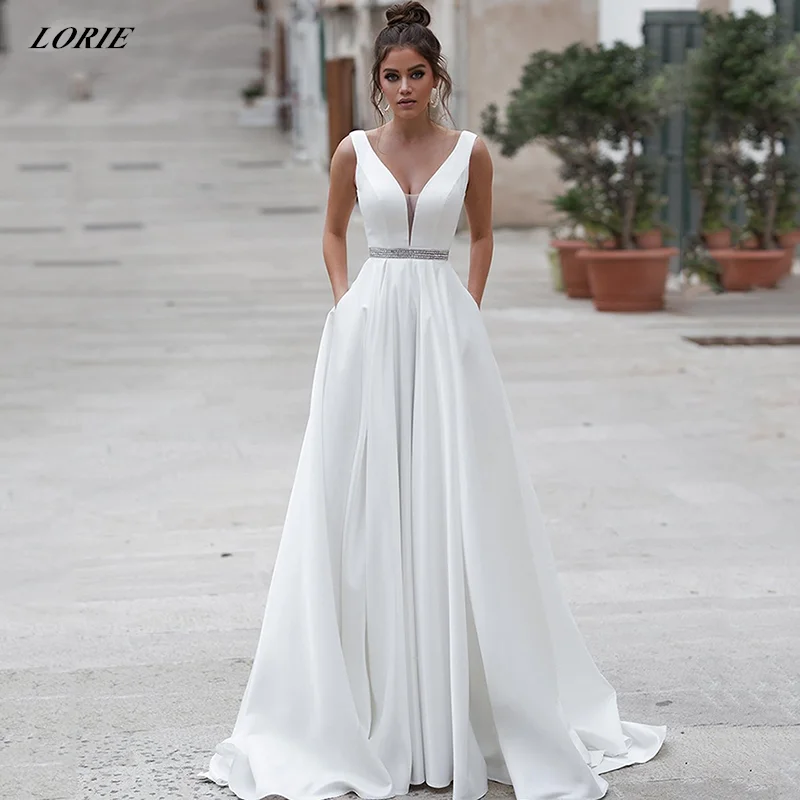 LORIE элегантные свадебные платья без рукавов с О-образным вырезом ...