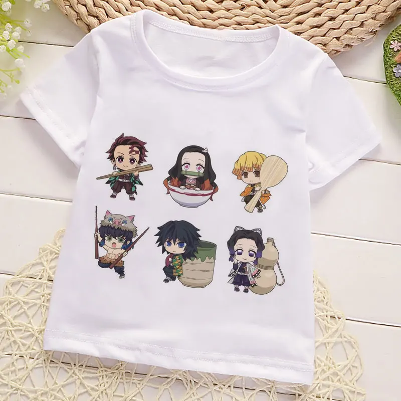 Футболка для мальчиков и девочек с принтом клинок демонов, белая, Харадзюку