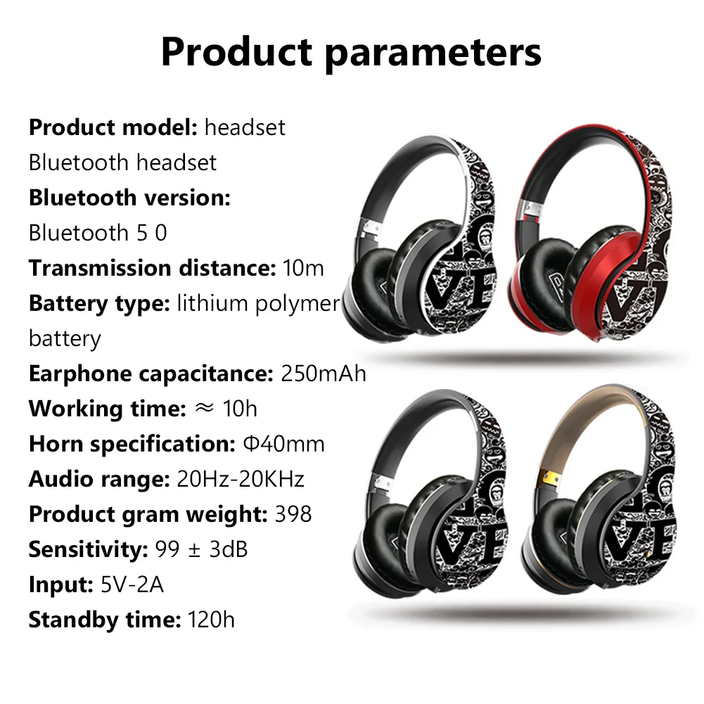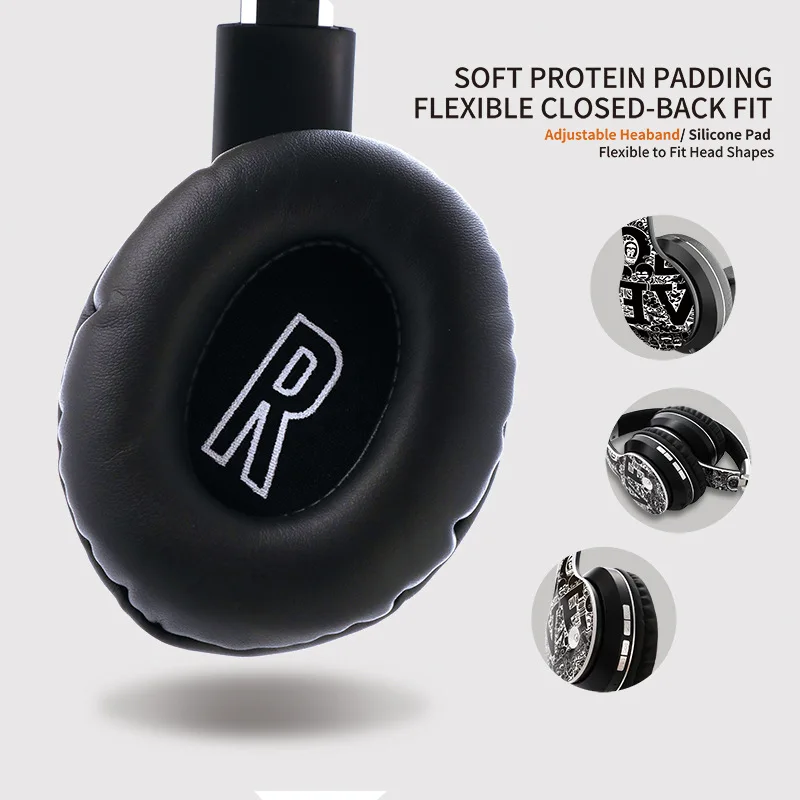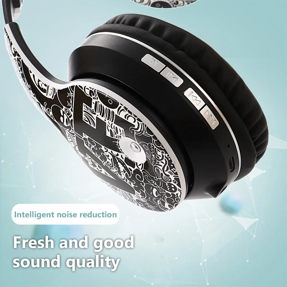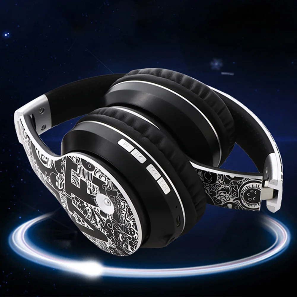 Беспроводные Накладные наушники граффити с Bluetooth 5,0, складные Hi-Fi стереонаушники с микрофоном для телефона, ПК, ноутбука