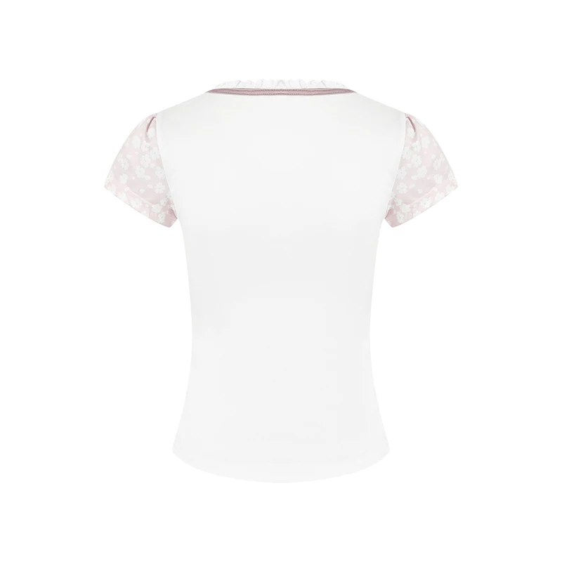 Винтажный кружевной топ с отделкой, лоскутный топ с коротким рукавом, облегающий кроп-топ y2k в эстетике Fairycore, гранж, квадратный воротник, футболка
