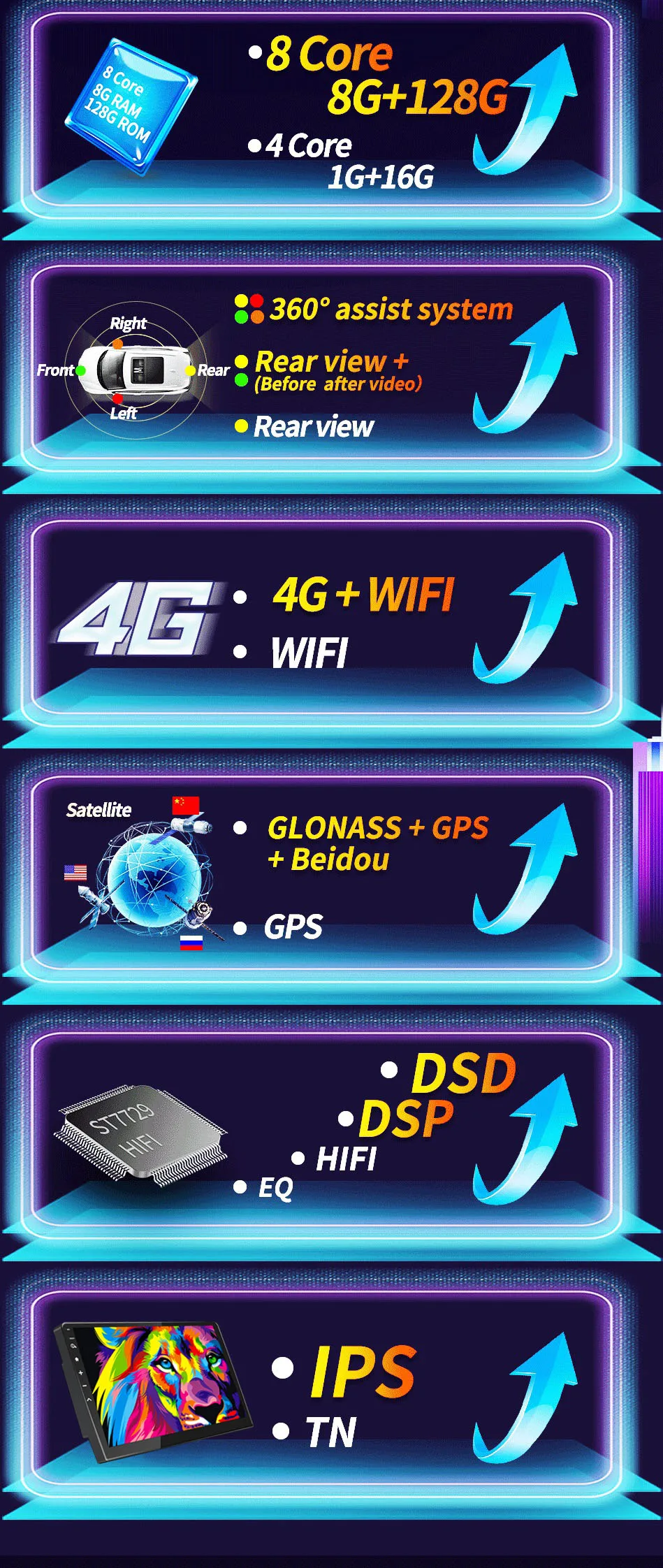 4-ядерный версия поддерживает только камеры заднего вида и Дополнительный внешний usb-аккумулятор для видеорегистратора.