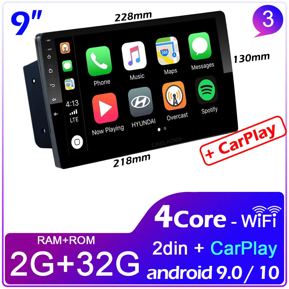 Мультимедийная магнитола CarPlay, универсальная стерео-система на Android, 9 дюймов, для Volkswagen, Nissan, Hyundai, Kia, Toyota, LADA, Ford, типоразмер 2DIN