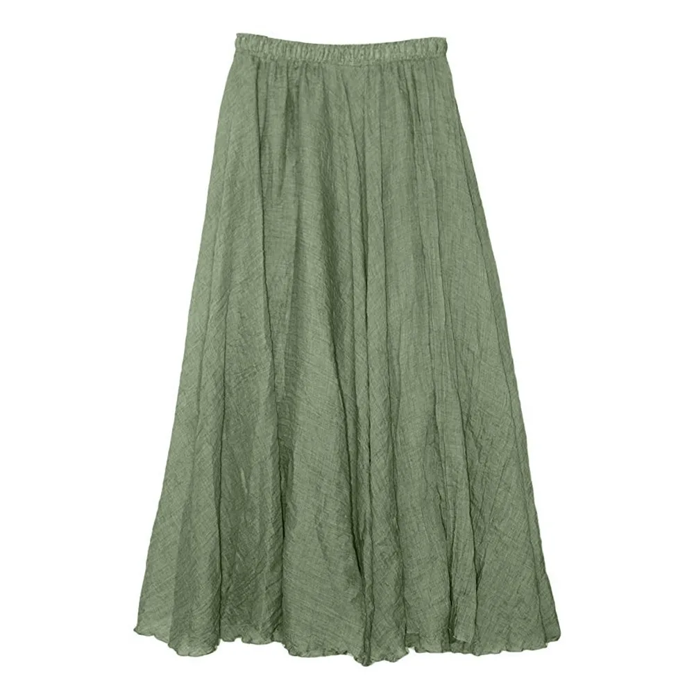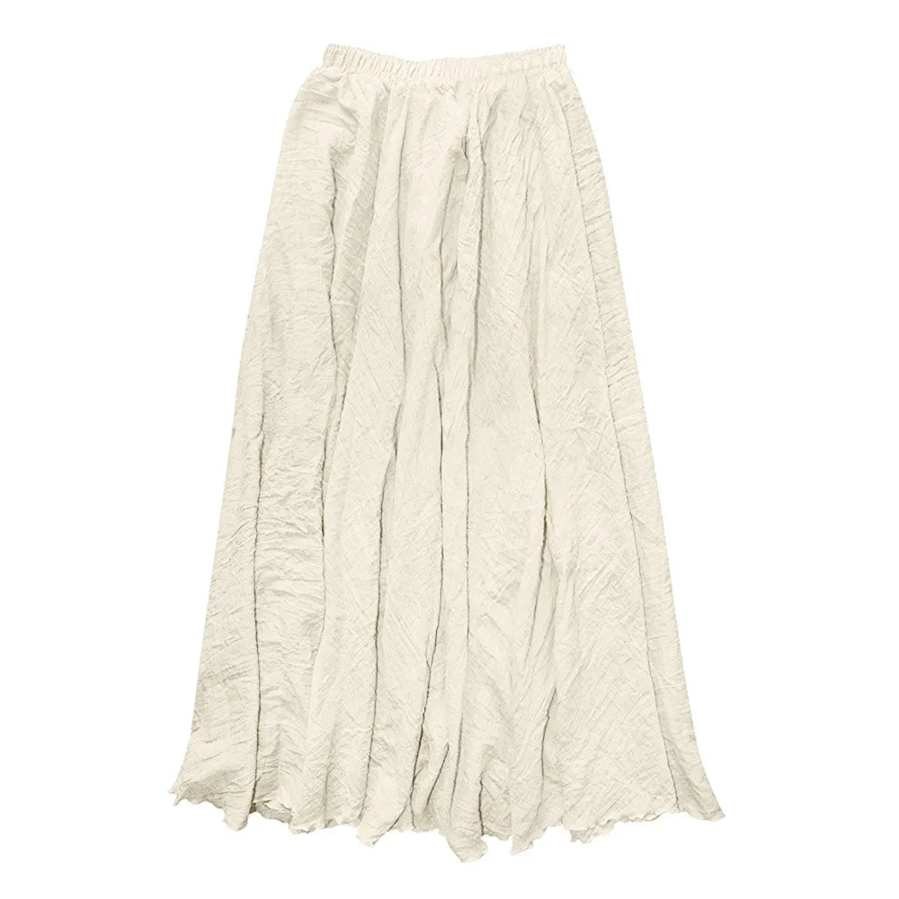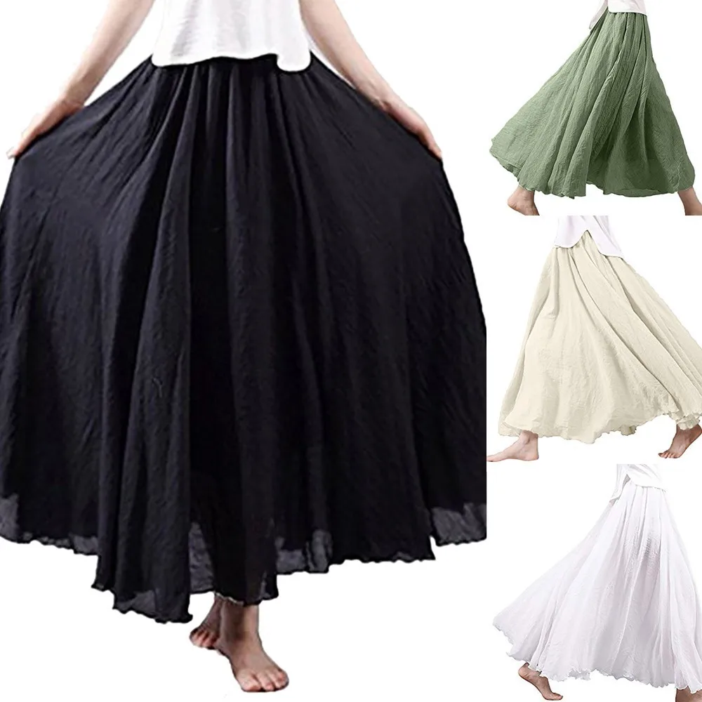 Макси-юбка JAYCOSIN женская с эластичным поясом, длинное платье из хлопка и льна в богемном стиле, Винтажная летняя Однотонная юбка, 2022