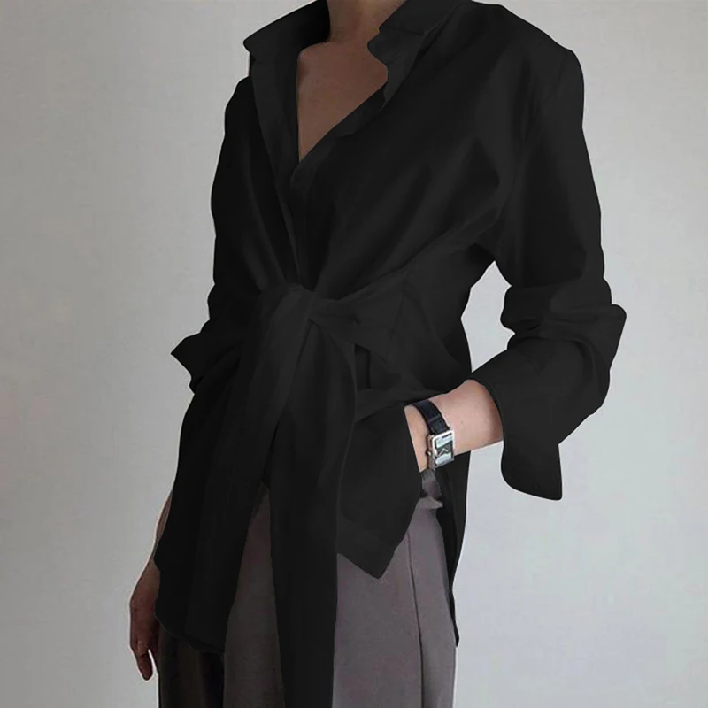 Рубашка женская с длинным рукавом и завязкой спереди, Модная элеган...
