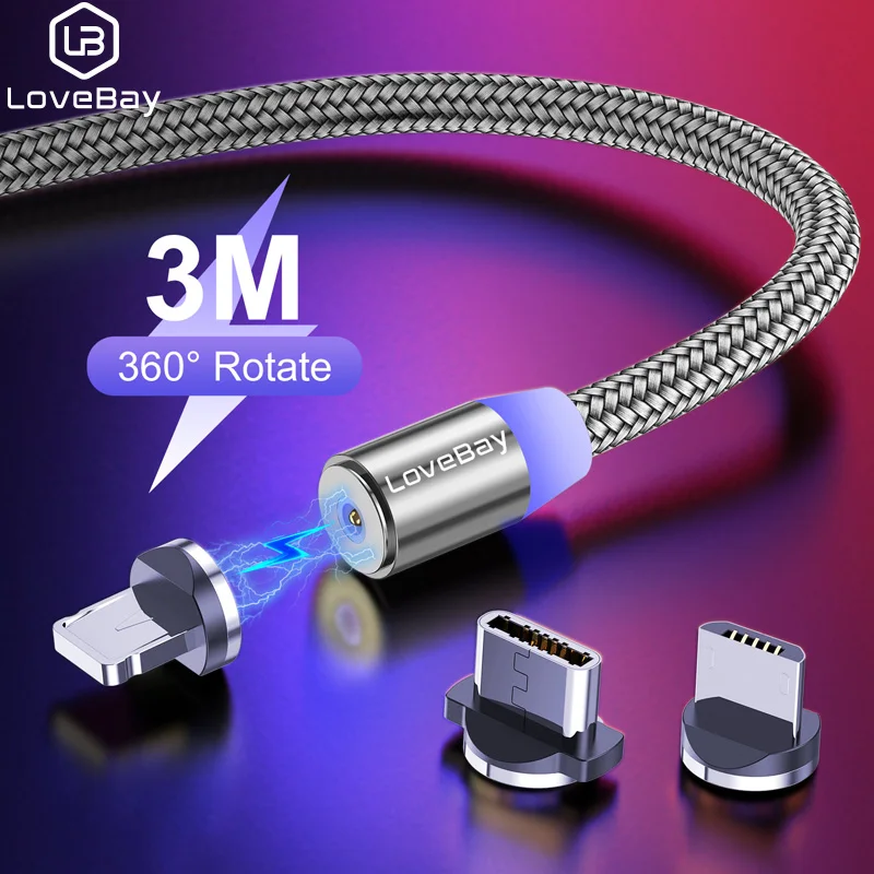 Кабель для зарядки магнитный Lovebay, Micro-USB Type-C Lightning, 2...