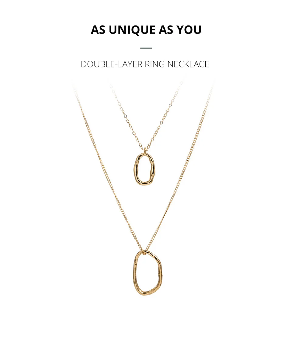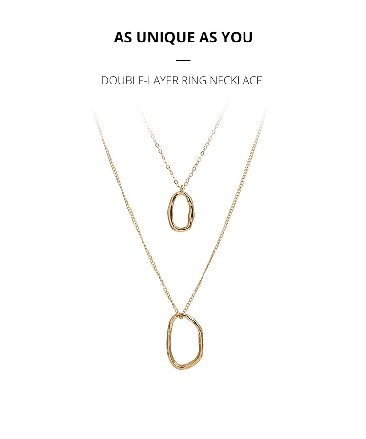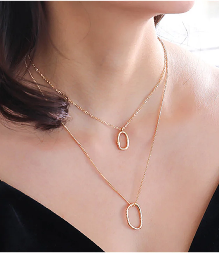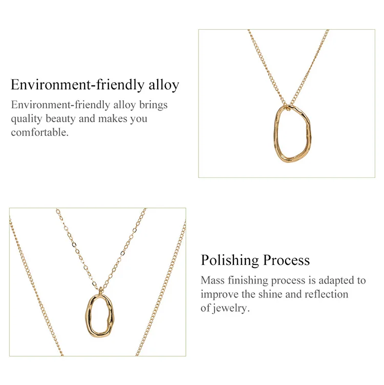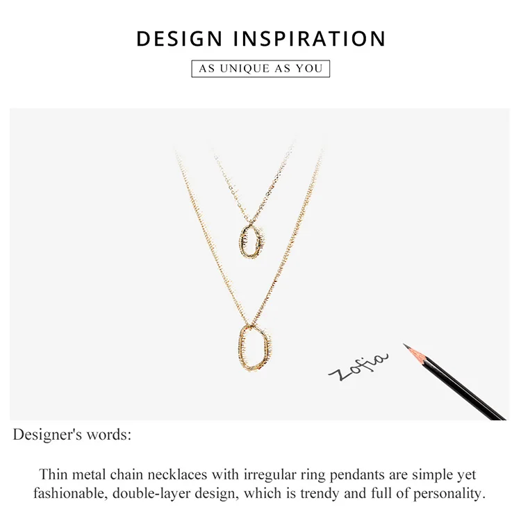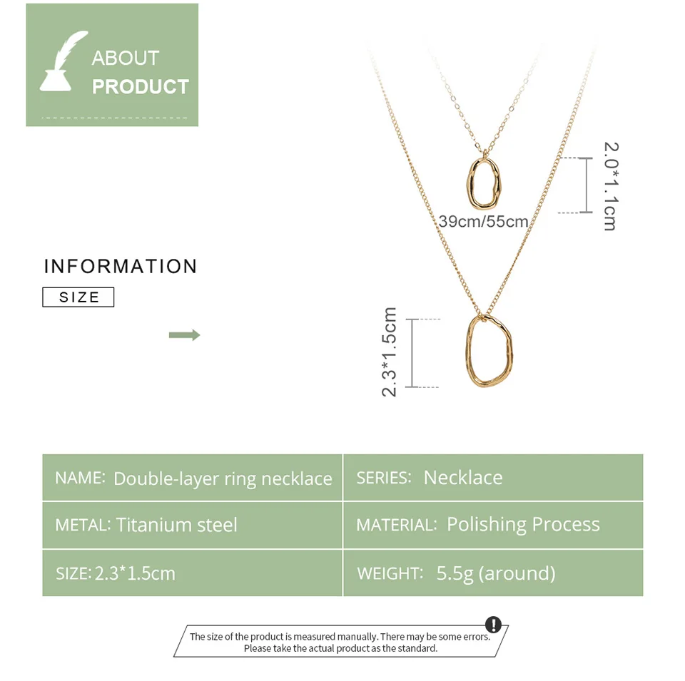 ❤[Опишите] тонкие металлические ожерелья с цепочкой, кольцо неправильной формы, подвески, простой, но модный, Двухслойный дизайн, который является модным и полным индивидуальности.❤[Параметры]: внутреннее кольцо: 39 см, кулон: 2,0*1,1 см, внешнее кольцо: 50 см + 5 см (регулируемая), кулон: 2,3*1,5 см