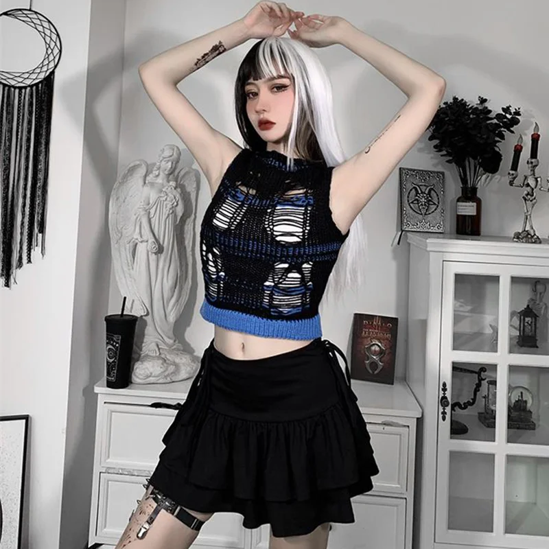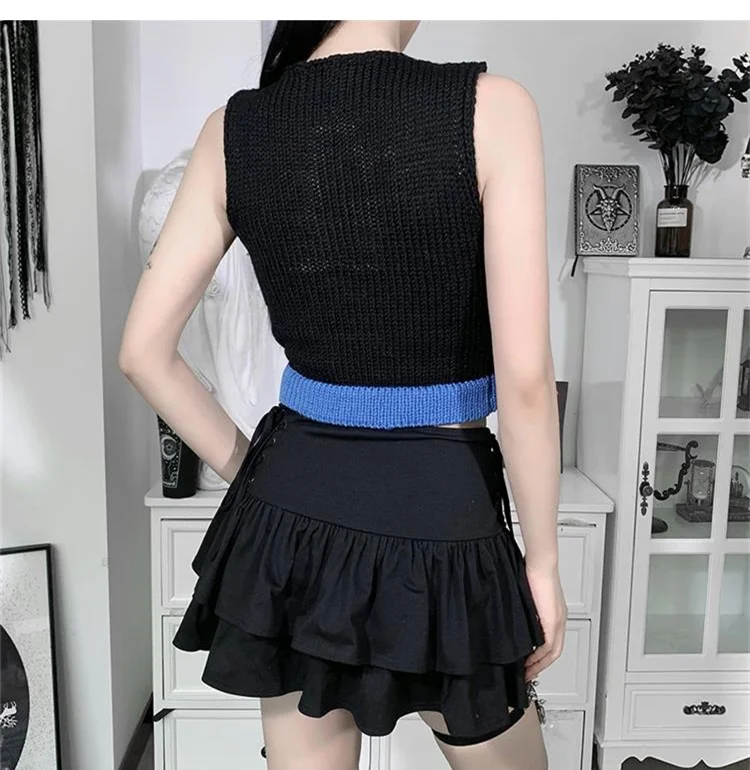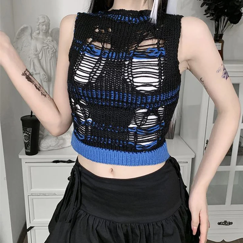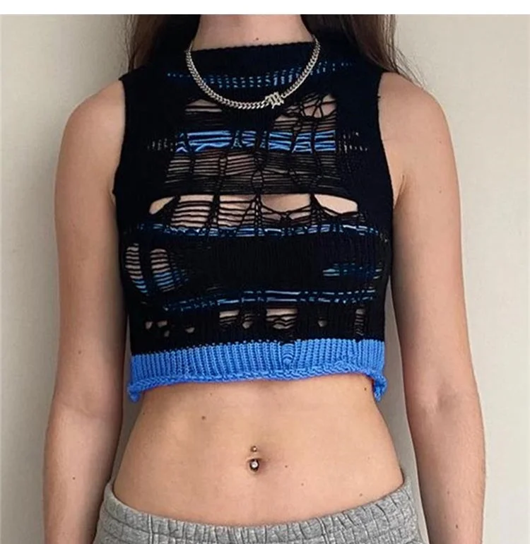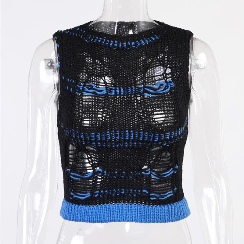 Женский укороченный топ без рукавов, ажурный облегающий топ с круглым вырезом в стиле пэчворк, женская уличная одежда, бюстье, Клубная одежда для женщин, лето 2022