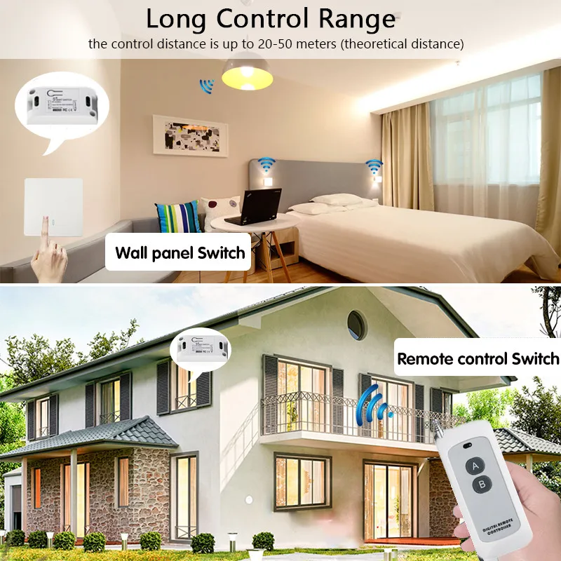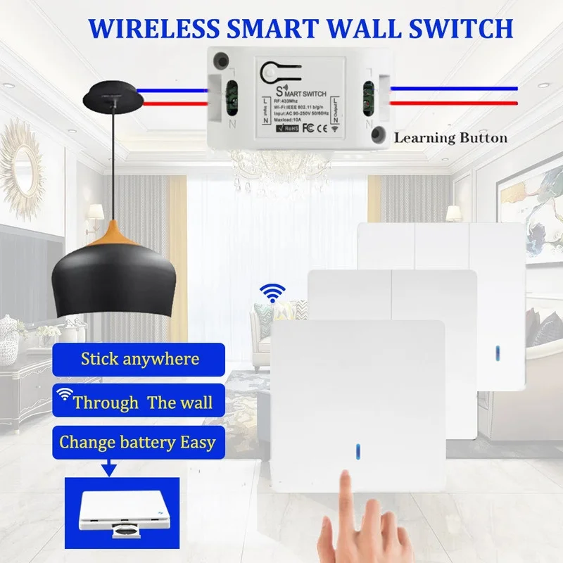 433 МГц умный выключатель света светодиодный кнопочный выключатель Универсальный беспроводной пульт дистанционного управления AC90 250 В 10 А 1 канал релейный контроллер для лампы