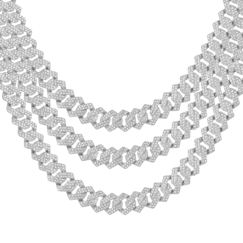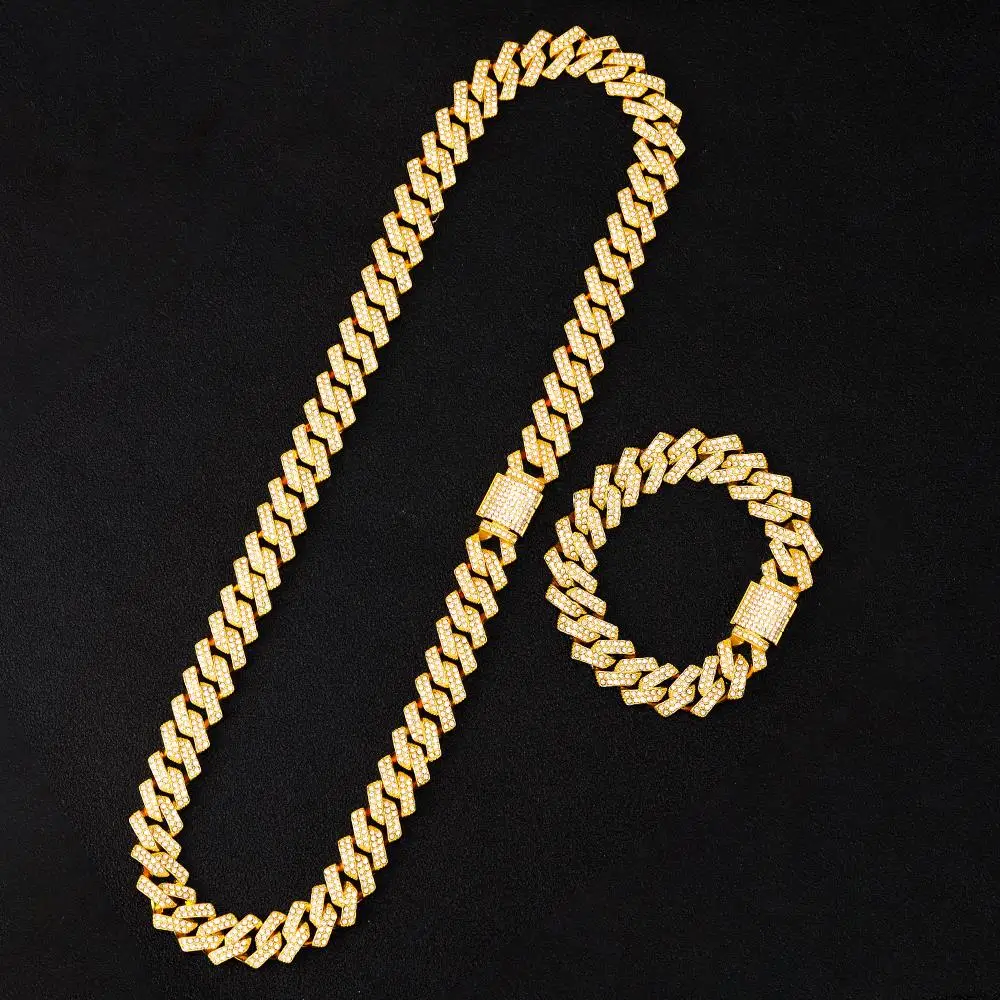 Тяжелые часы в стиле хип-хоп 15 мм + кубинское ожерелье с зазубринами Bling Crystal AAA + сверкающие цепи Стразы для мужчин ювелирные изделия 2022