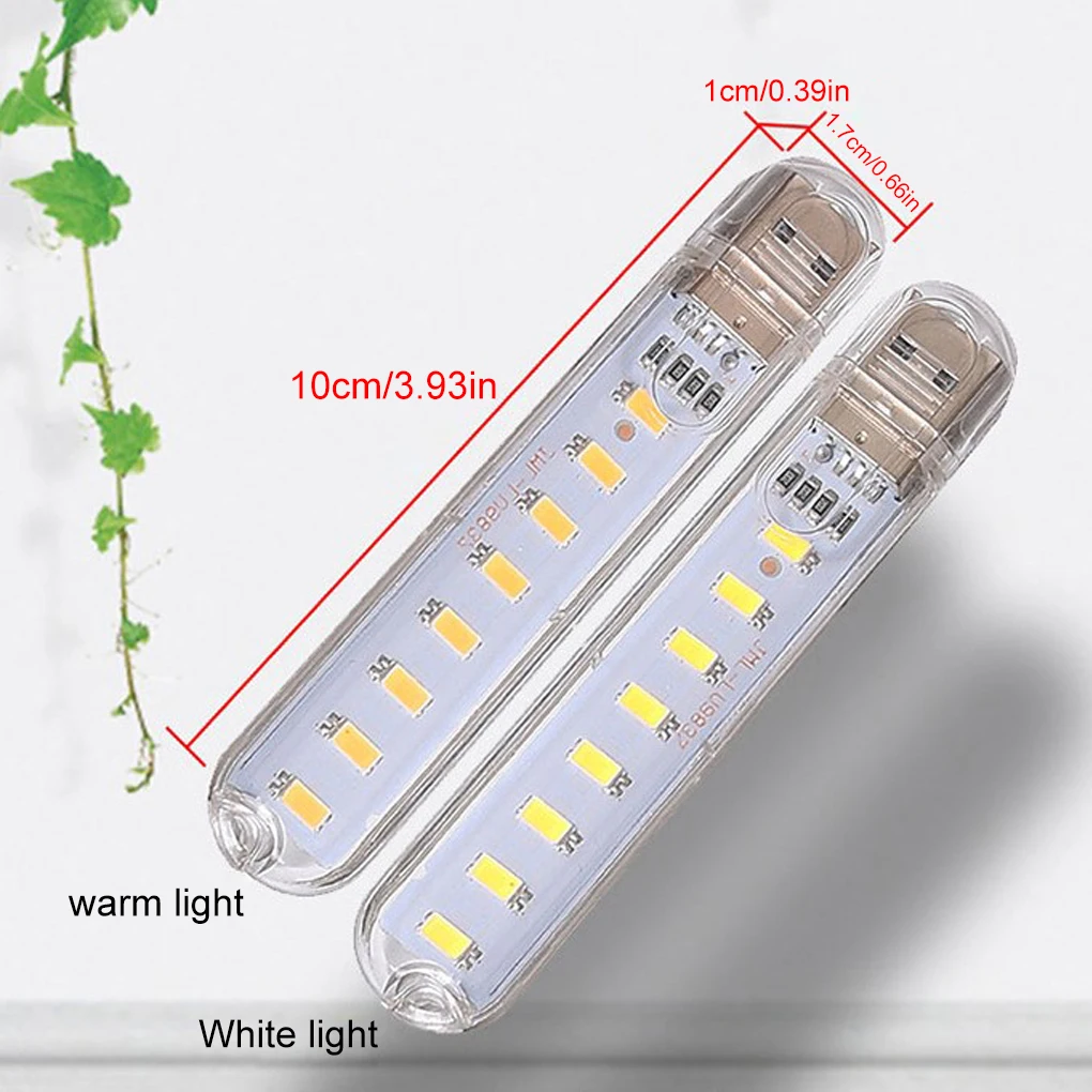 8 светодиодов светильник:Материал: ПВХ.Цвет: как на фотографии.Размер: прибл. 100*10*17 мм/3.94x0.39x0.67 дюймов.Мощность: 12 Вт.Напряжение: 5 В.Яркость: 100 лм.Эффект на светильник: 20 лм/Вт.Срок службы: около 100000 ч.Источник питания: USB.