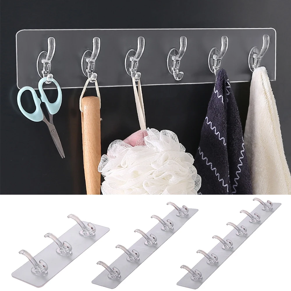 6 шт.товар, органайзер для кухни и ванной, Прозрачный Прочный самоклеящийся держатель для ключей, большая нагрузка для дома