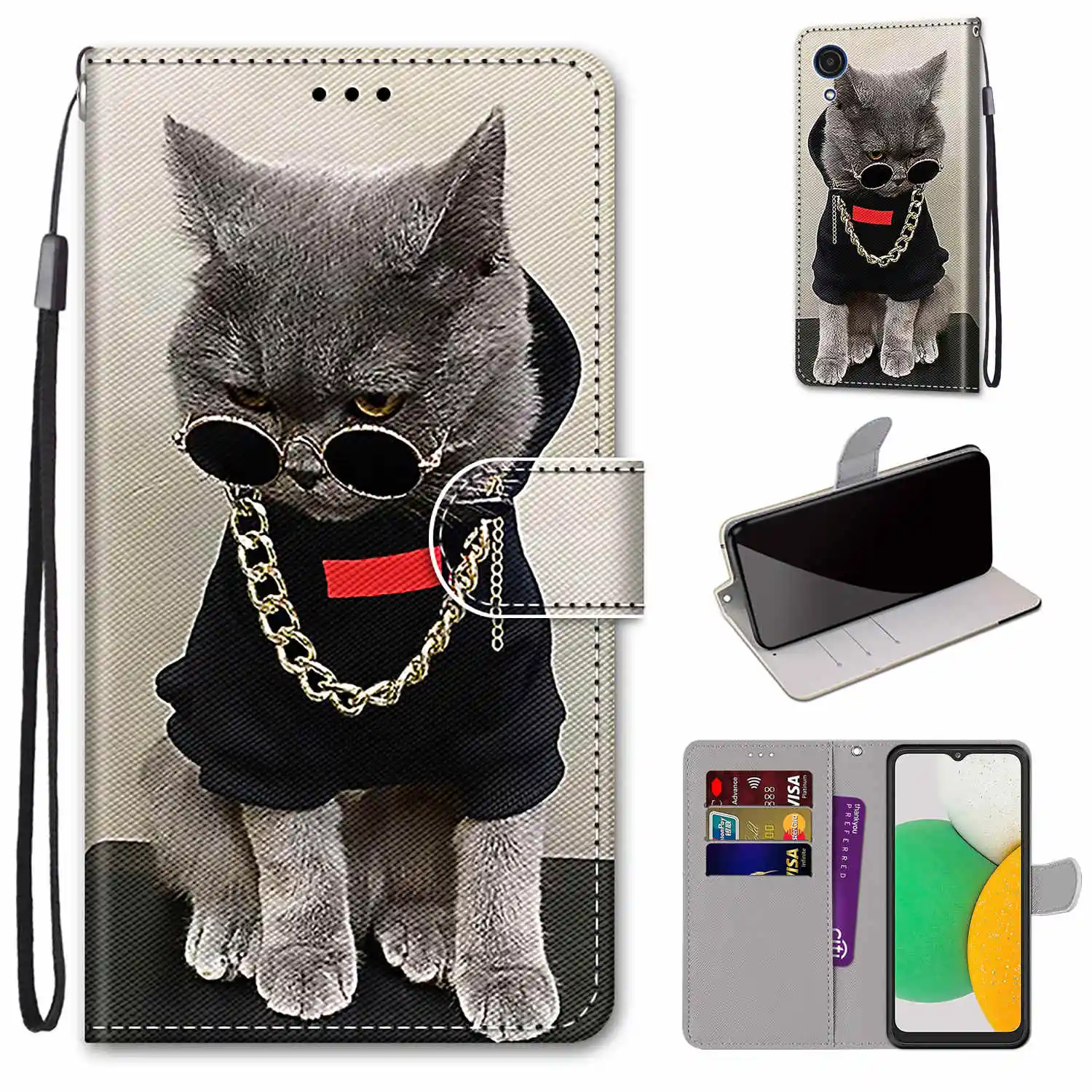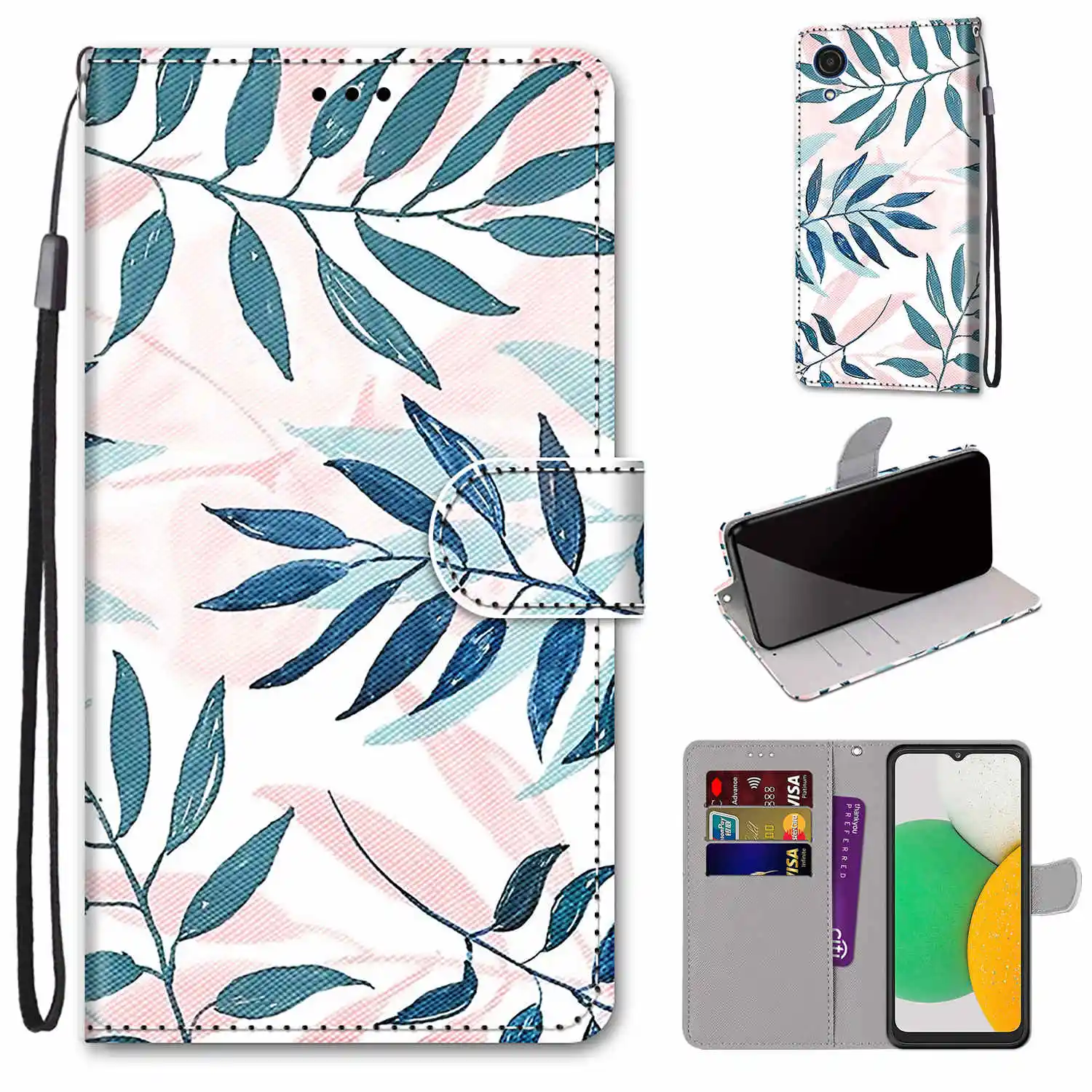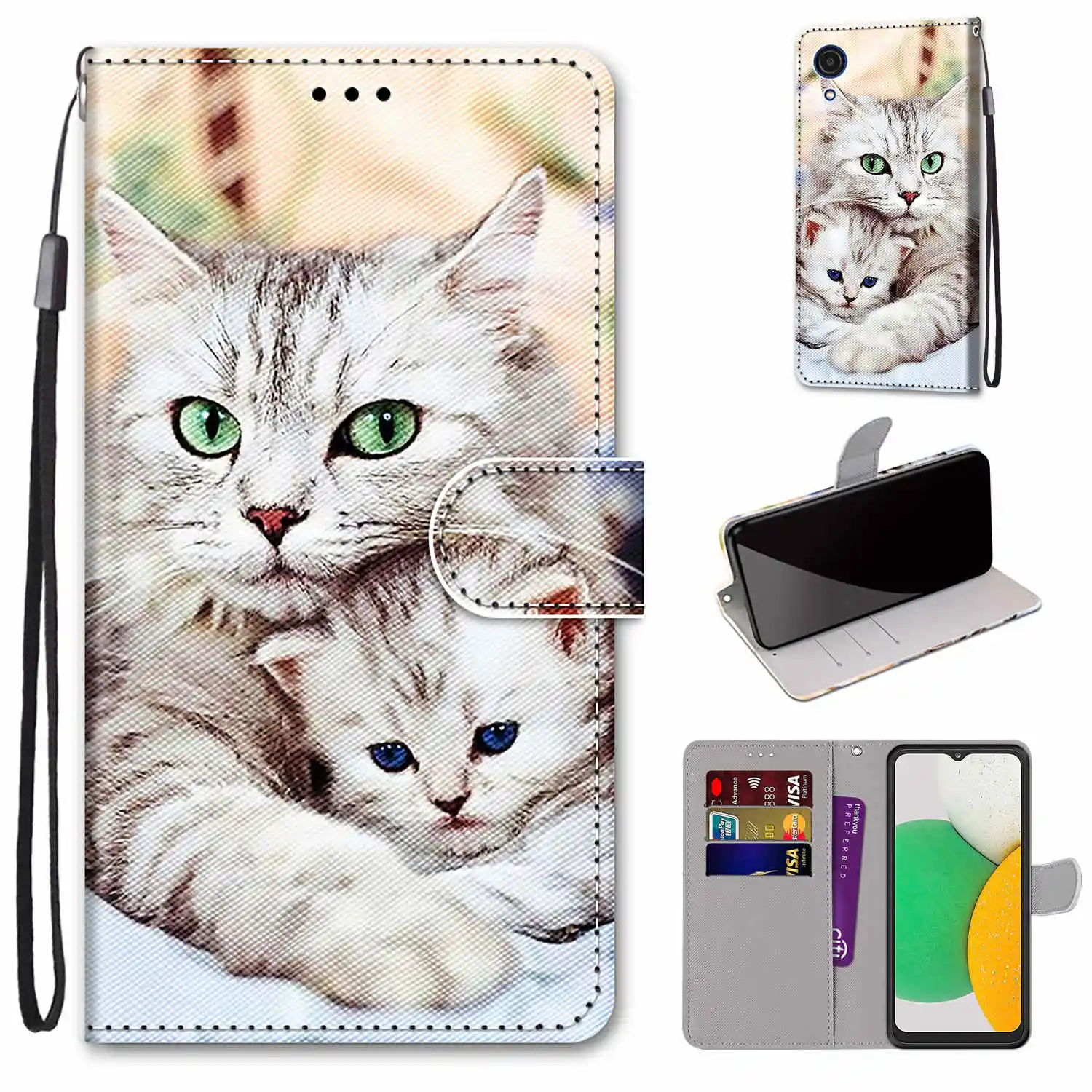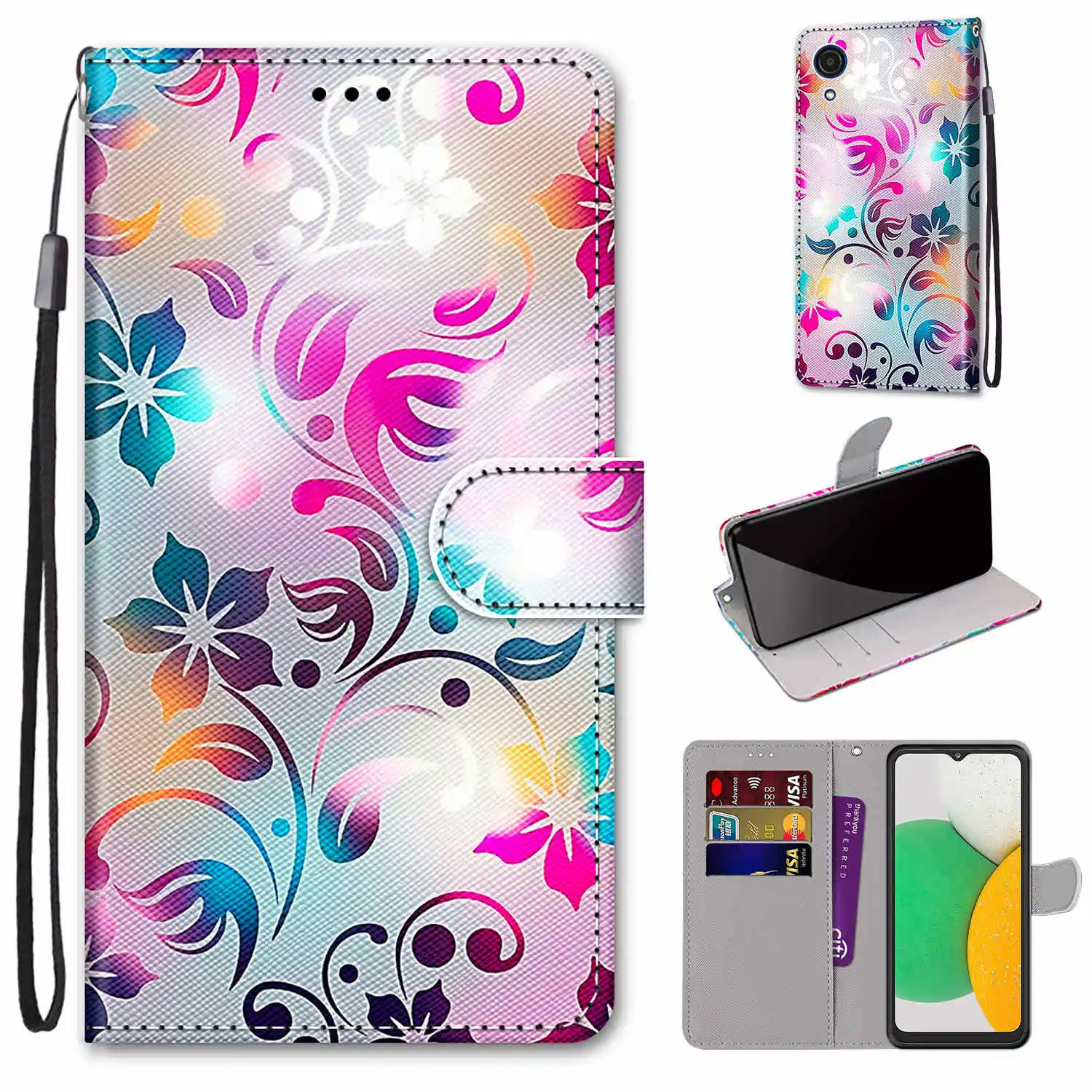 StyleAnimal Cat Flower Pattern Wallet Flip Cover For Samsung Galaxy A03 Core A03s A13 A33 A53 M52 5G S22 Pro Plus Ultra