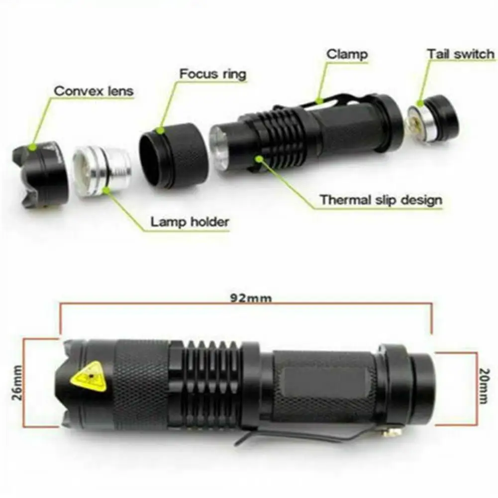 Светодиодный мини-фонарик CREE Q5, 1200 лм, светодиодный фонарик с регулируемым фокусом, водонепроницаемый фонарик для наружного использования с батареей AA14500