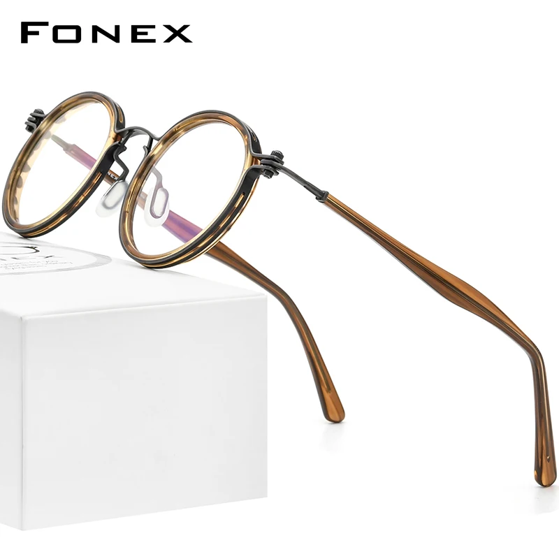 FONEX Мужская и женская круглая оправа, винтажная оправа из чистого...