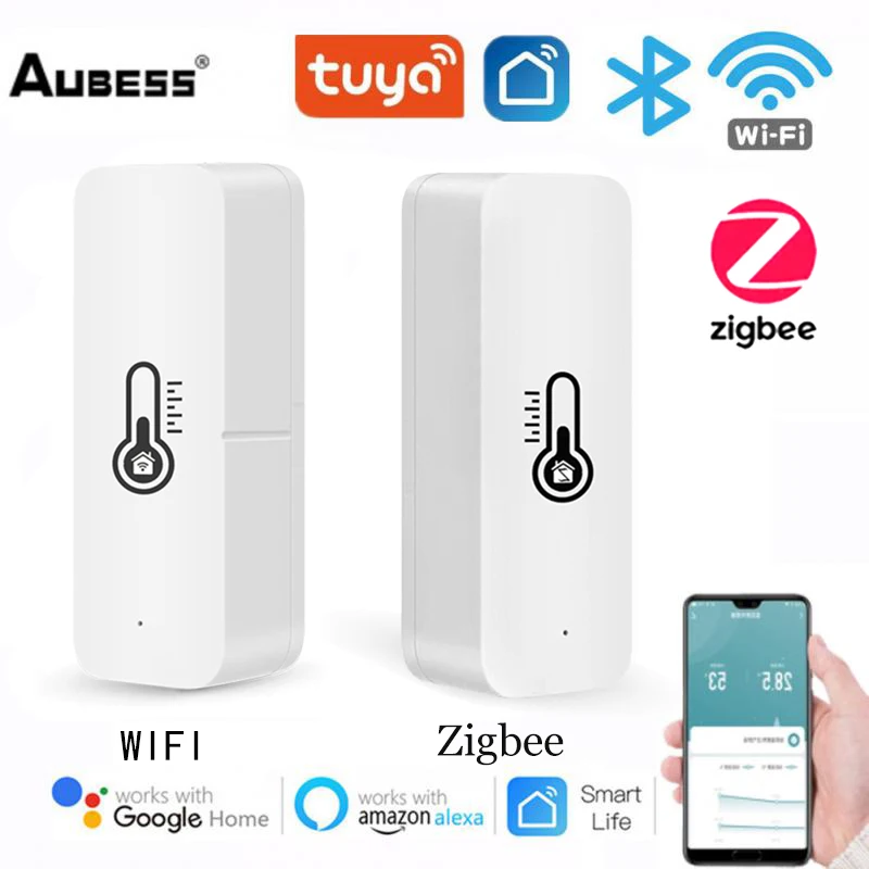 Датчик температуры и влажности Aubess Tuya Smart Life Wi-FiZigBee, комнатный гигрометр, термометр с поддержкой Alexa Google Home