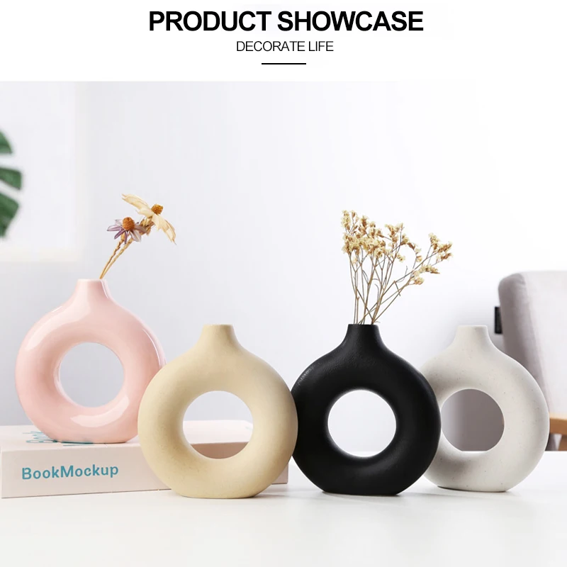 Керамическая ваза в скандинавском стиле, белый пончик, круговой цветочный горшок, офисный стол, гостиная, интерьерный декор, аксессуары для украшения дома