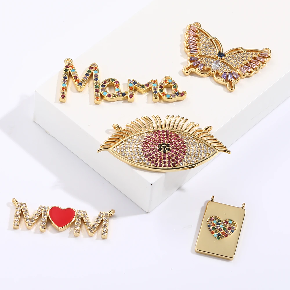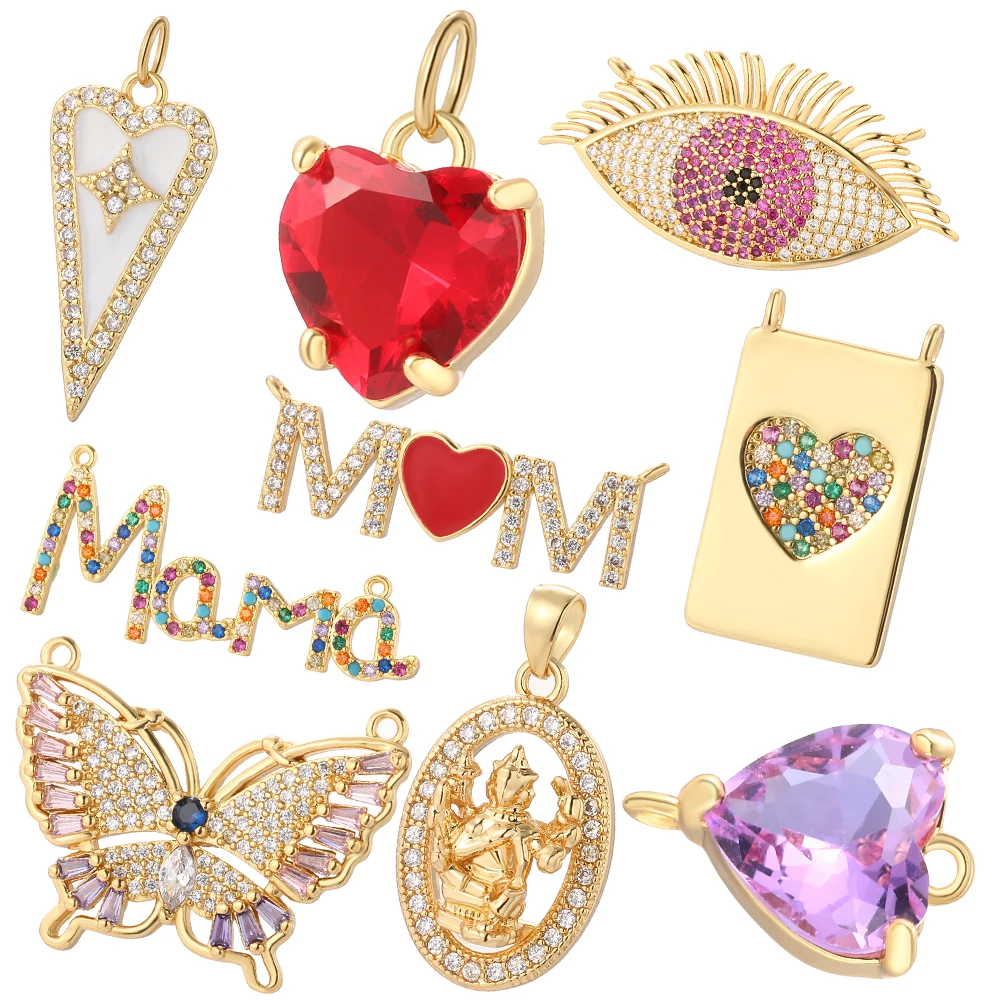 Шармы-подвески с изображением бабочки, сердца, букв сглаза, синего цвета для изготовления ювелирных изделий, подвески с настоящим позолоченным покрытием, серьги сделай сам, ожерелье, браслет