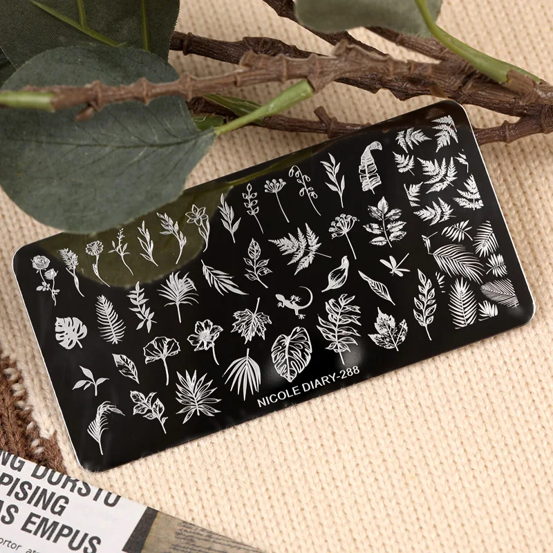Трафареты NICOLE DIARY для штамповки с зелеными листьями кокоса, весенне-летние трафареты для штамповки с цветочным орнаментом, шаблоны для лака для ногтей