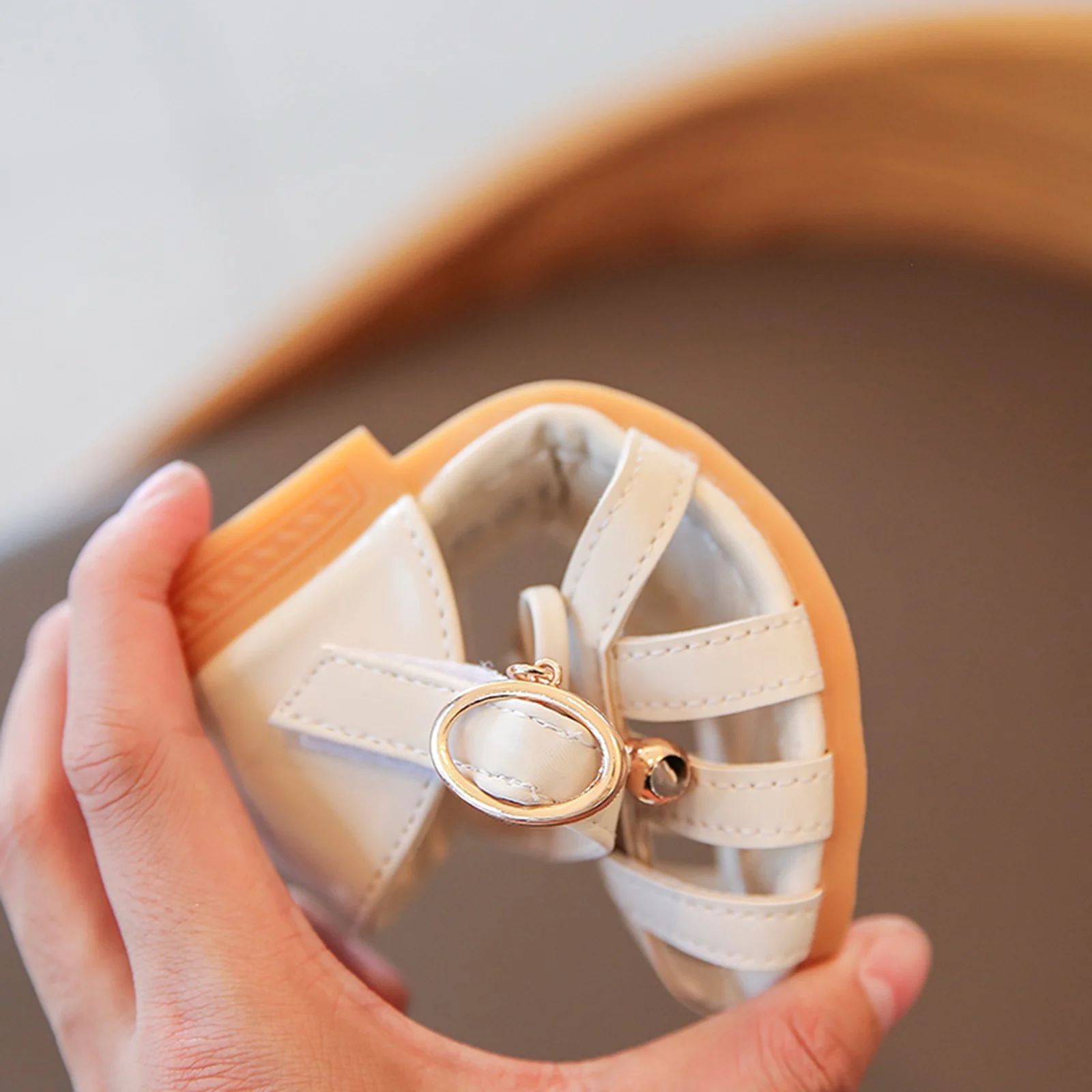 Детские сандалии для девочек, летняя обувь из искусственной кожи с бантом и вырезами, обувь принцессы на плоской подошве для маленьких девочек, размеры 24-33, 2022