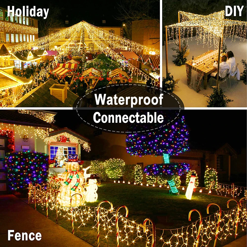 СВЕТОДИОДНАЯ Гирлянда-сосулька XFLAMPER 45 м, 8 режимов, водонепроницаемая сказочная гирлянда, уличное украшение для свадьбы, вечеринки, Нового года, праздника