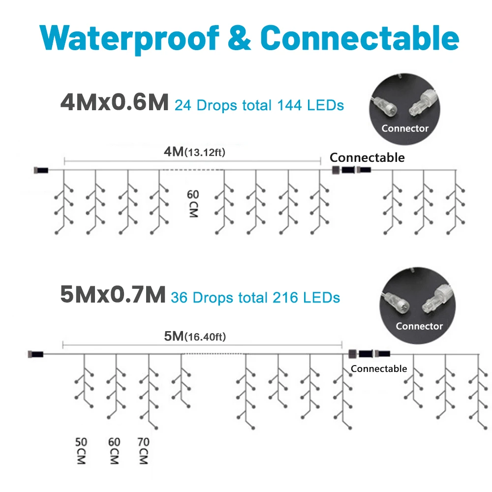 Каждый светодиодный Светильник поставляется с водонепроницаемым сквозным разъемом для удовлетворения ваших потребностей в украшении больших и небольших зон, таких как Рождественское украшение, День благодарения, свадьба, день Святого Валентина и многое другое. Вы можете подключить максимум 10 комплектов вместе. Каждая длина составляет 4/5 метров с 144/216 светодиодами, максимальная расширяемая длина составляет 40/50 метров 1440/2160 светодиодов. Светильник в наш дом на Рождество, и это разговор с нашими соседями и друзьями.