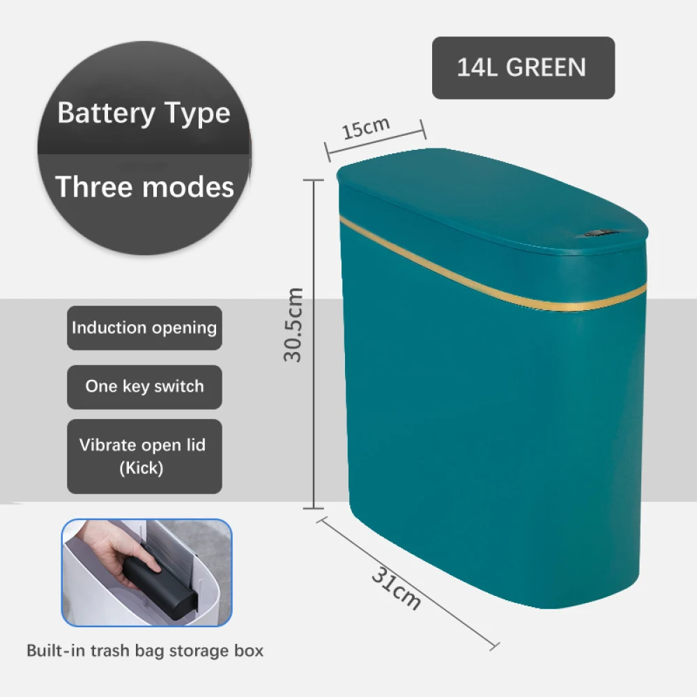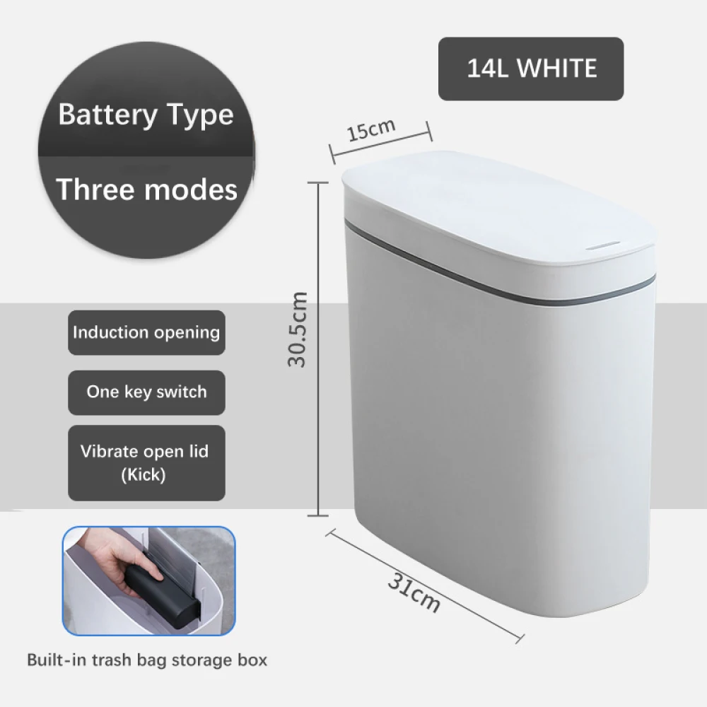 Умный бак с датчиком мусора, электронный автоматический бытовой туалет для ванной комнаты, водонепроницаемый плотный шов0,3 s смарт-датчик, водонепроницаемый, хорошая герметичность, предотвращает специфический запах, на высоком каблуке, открытые сбоку туфли режим, экономия пространстваУмный датчикРазработанная нами Сенсорная технология уменьшает ненужные отверстия и продлевает срок службы батареи. Если вы держите инфракрасный датчик движения рукой, крышка будет оставаться открытой, обеспечивая удобный пользовательский опыт. Если датчик не может обнаружить какое-либо движение, крышка автоматически закроется через 5 секунд. Если вы хотите держать крышку открытой, просто слегка коснитесь чувствительной к весу кнопки на правой стороне, а затем нажмите кнопку снова, чтобы закрыть ее. Продукт питается от 4 батареек АА (продукт не имеет батареи, вам нужно купить его самостоятельно).ВодонепроницаемостьПередовая Водонепроницаемая технология IPX5 предотвращает повреждение оборудования в воде или влажной среде. Нет пятен воды на поверхности после промывки.Экономьте пространство