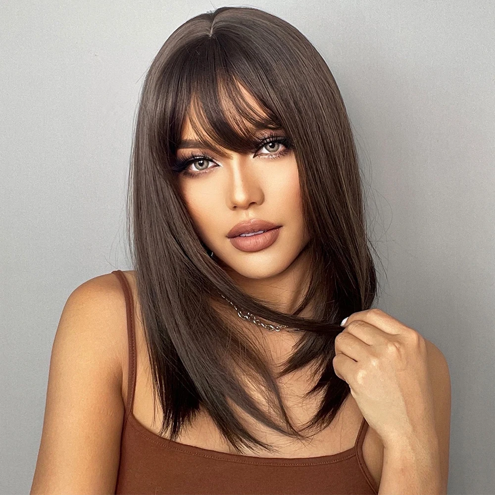 Женский парик из синтетического волокна GEMMA, темно-коричневый парик с челкой на плече, парик для косплея