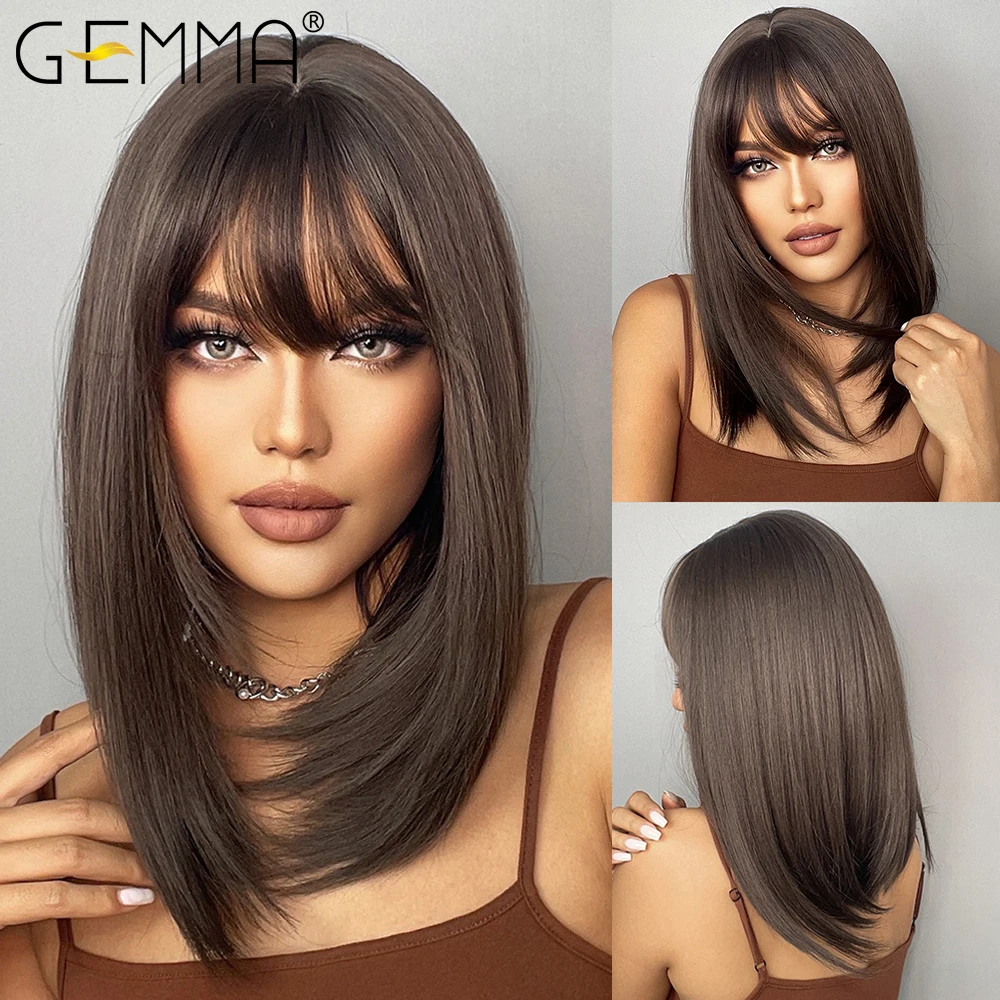 GEMMA темно-коричневый BoBo синтетический парик с челкой длиной плеч прямой парик для женщин Косплей ежедневный парик термостойкие волосы Fibr