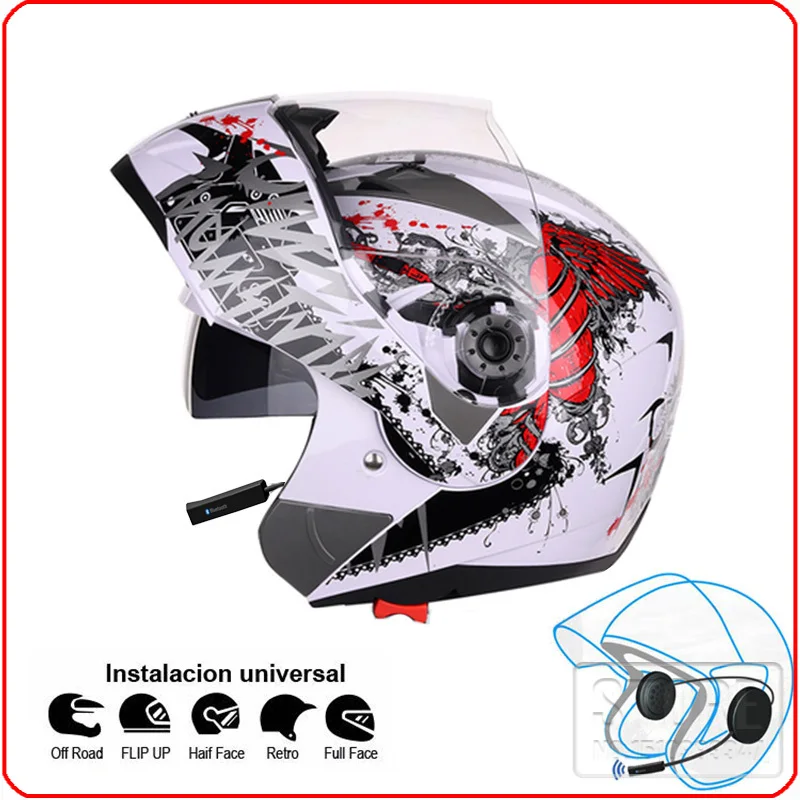 Мотоциклетный шлем, Bluetooth совместимый, раскладной, с двойным козырьком