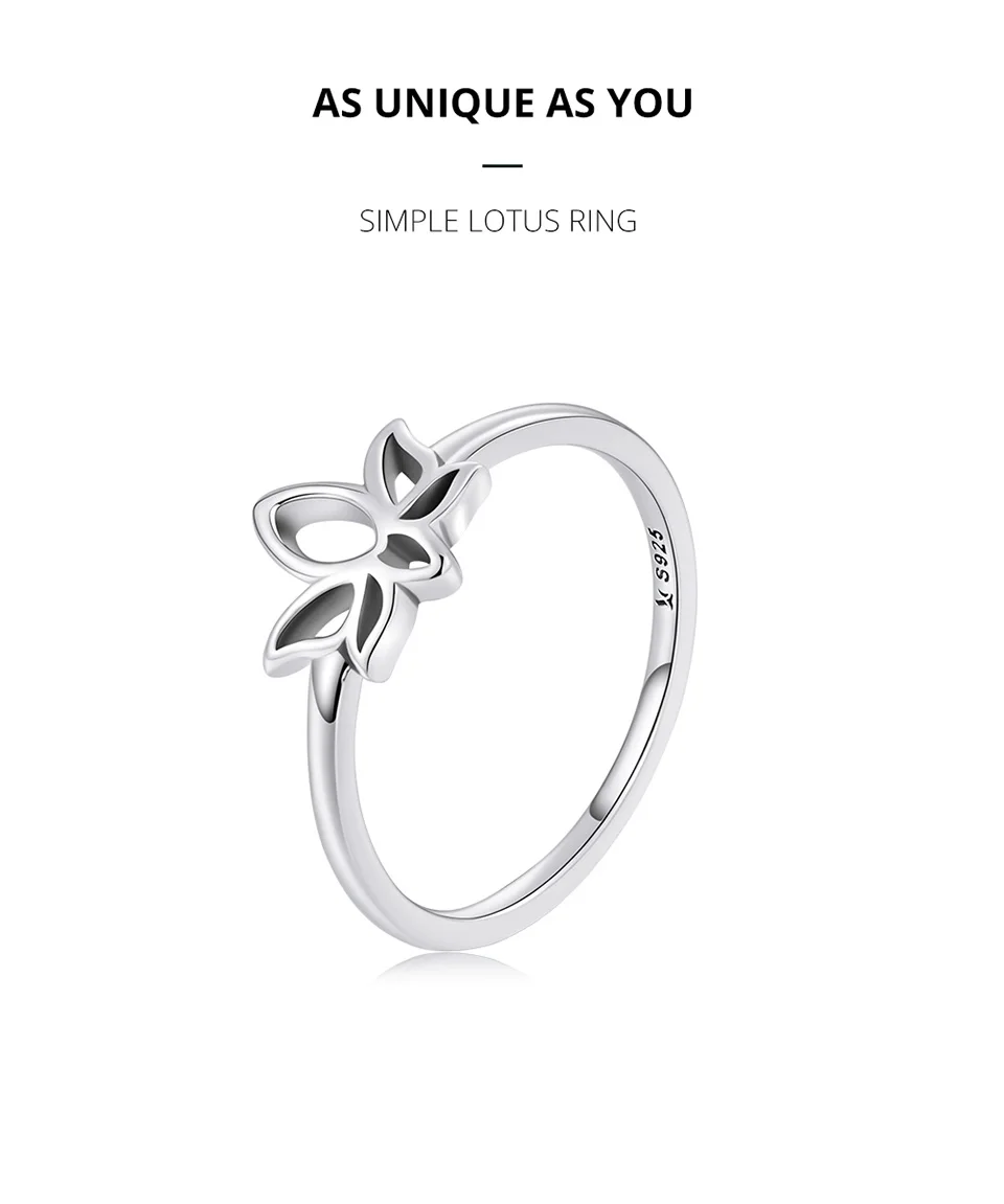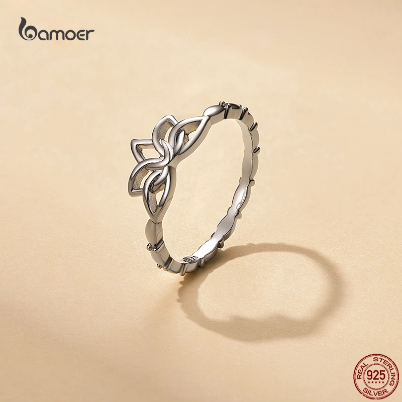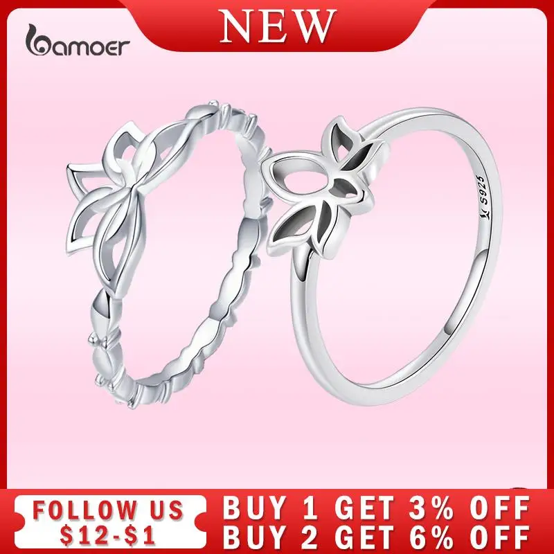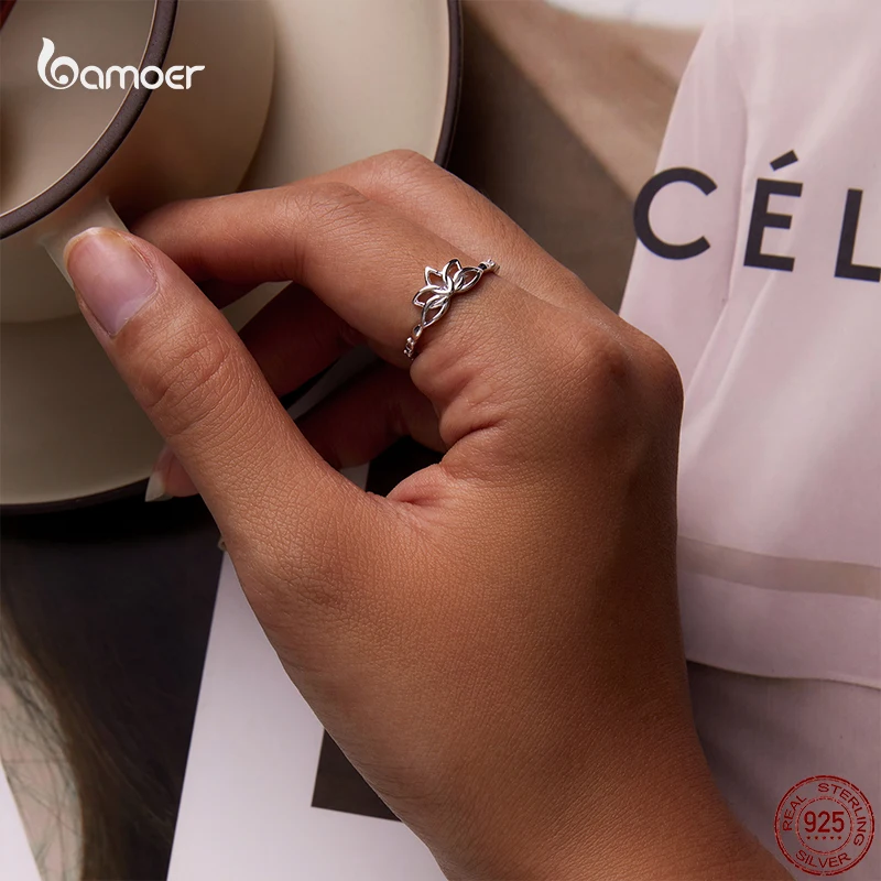 Bamoer, Настоящее серебро 925 пробы, простые кольца в виде лотоса для женщин, женские кольца на палец в виде цветка, высокое качество, ювелирные изделия для вечеринок, подарки