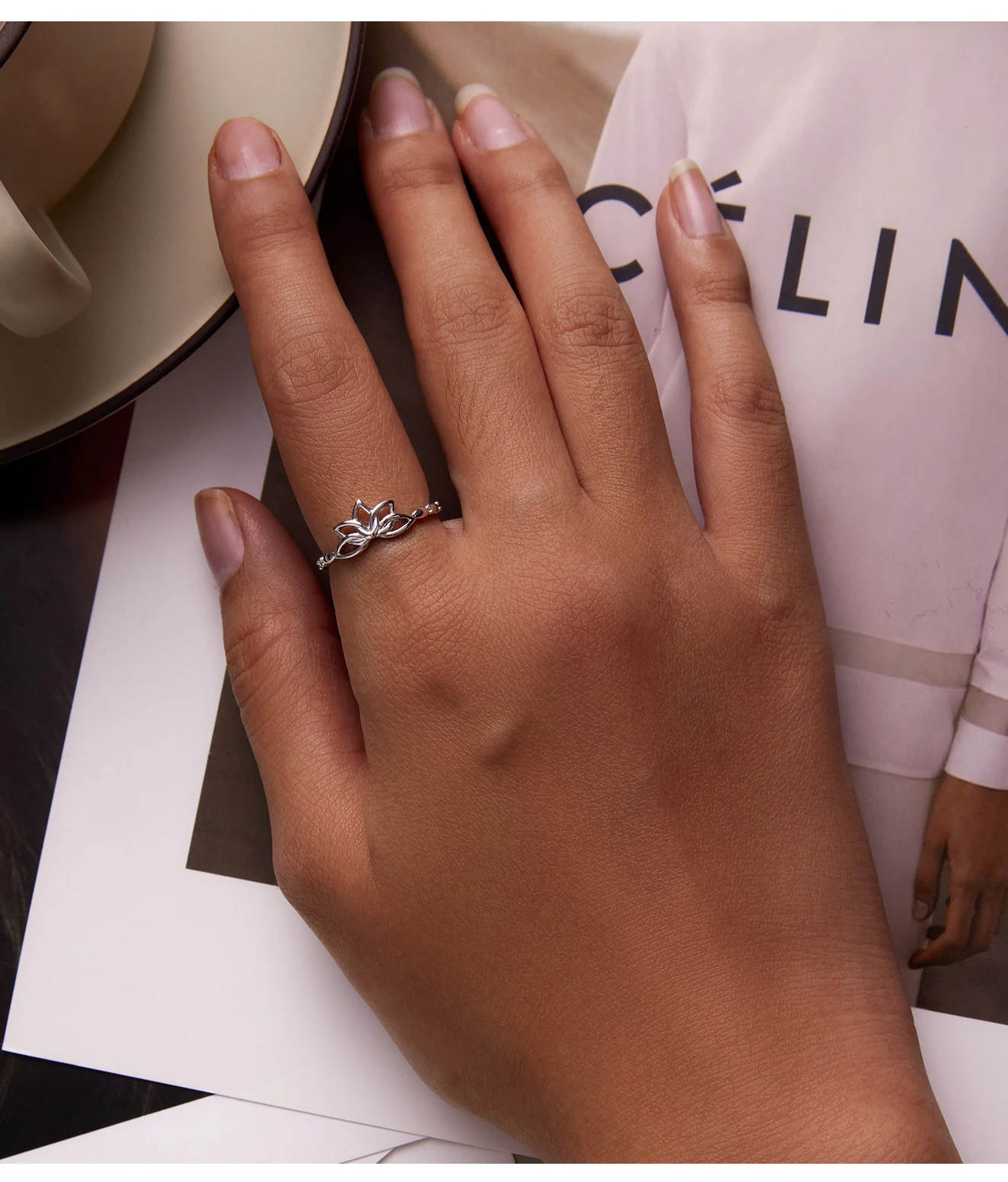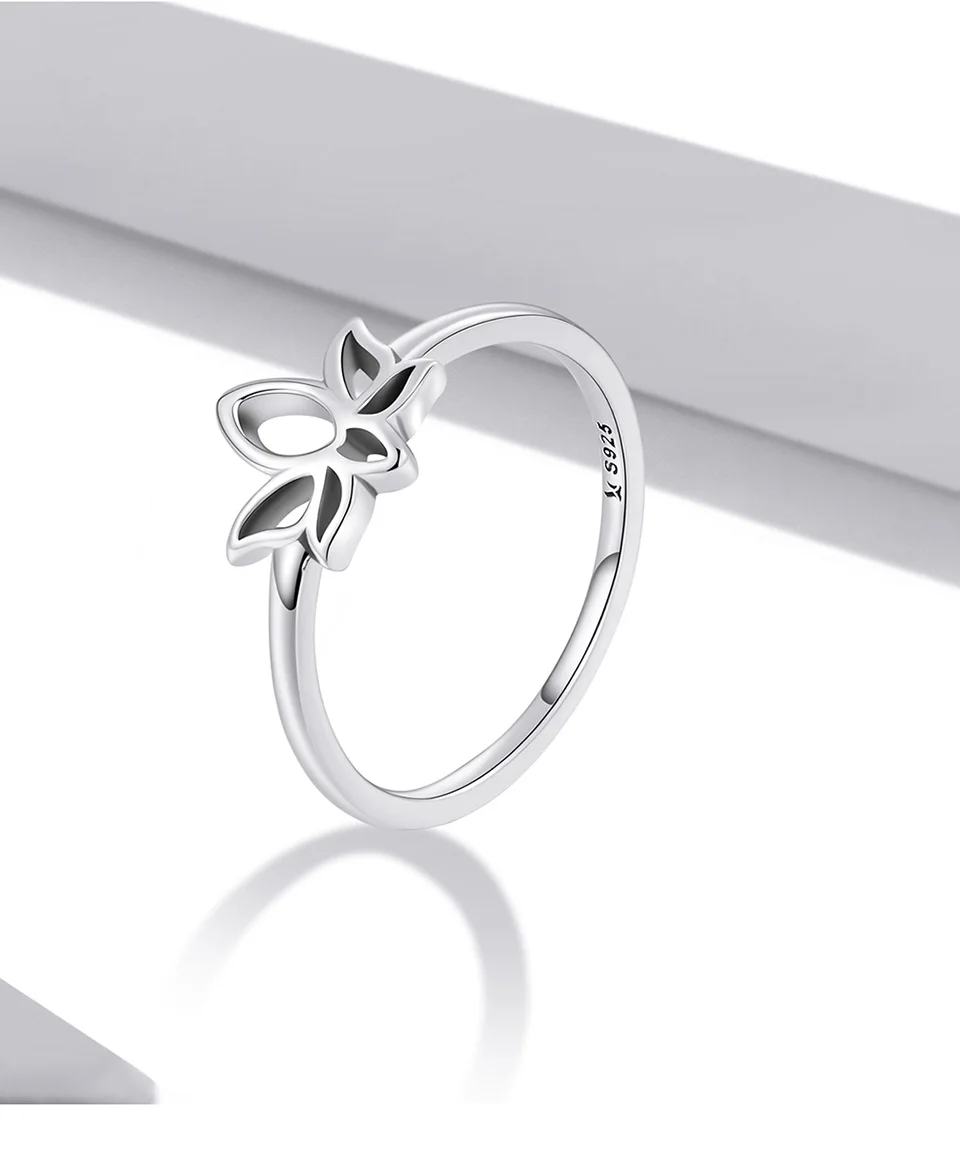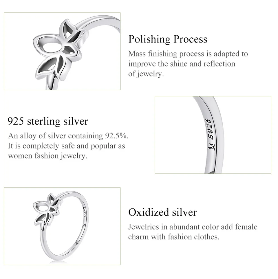 Bamoer, Настоящее серебро 925 пробы, простые кольца в виде лотоса для женщин, женские кольца на палец в виде цветка, высокое качество, ювелирные изделия для вечеринок, подарки