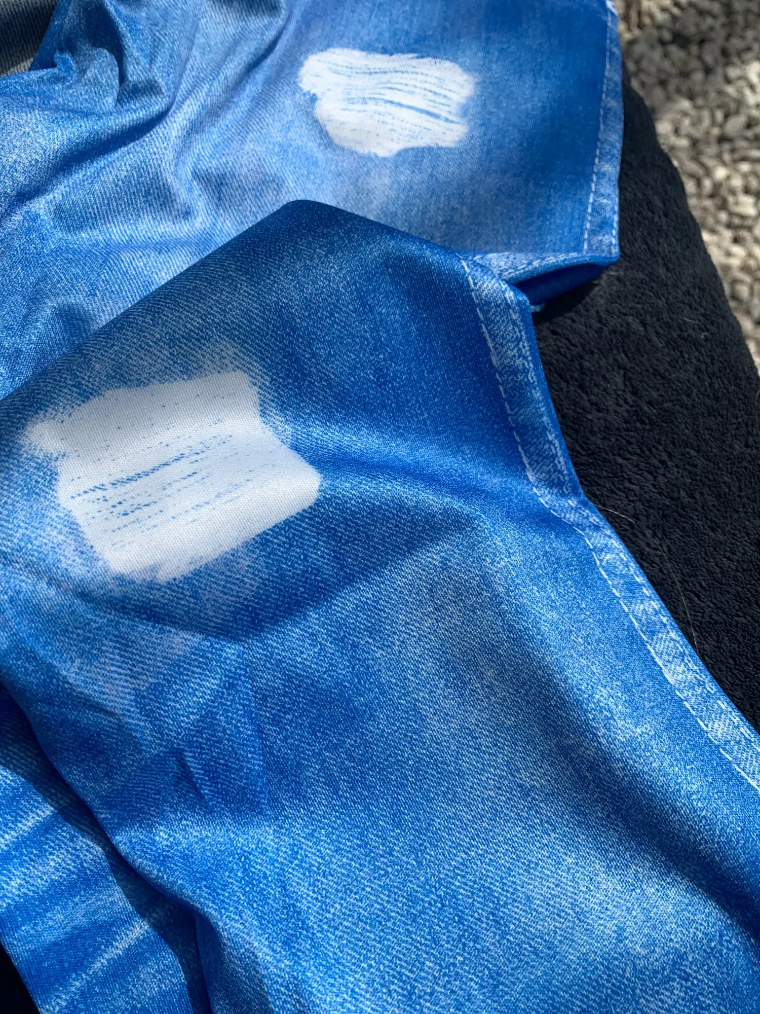 На фото он имеет внешний вид ткани и леггинсы другого цвета